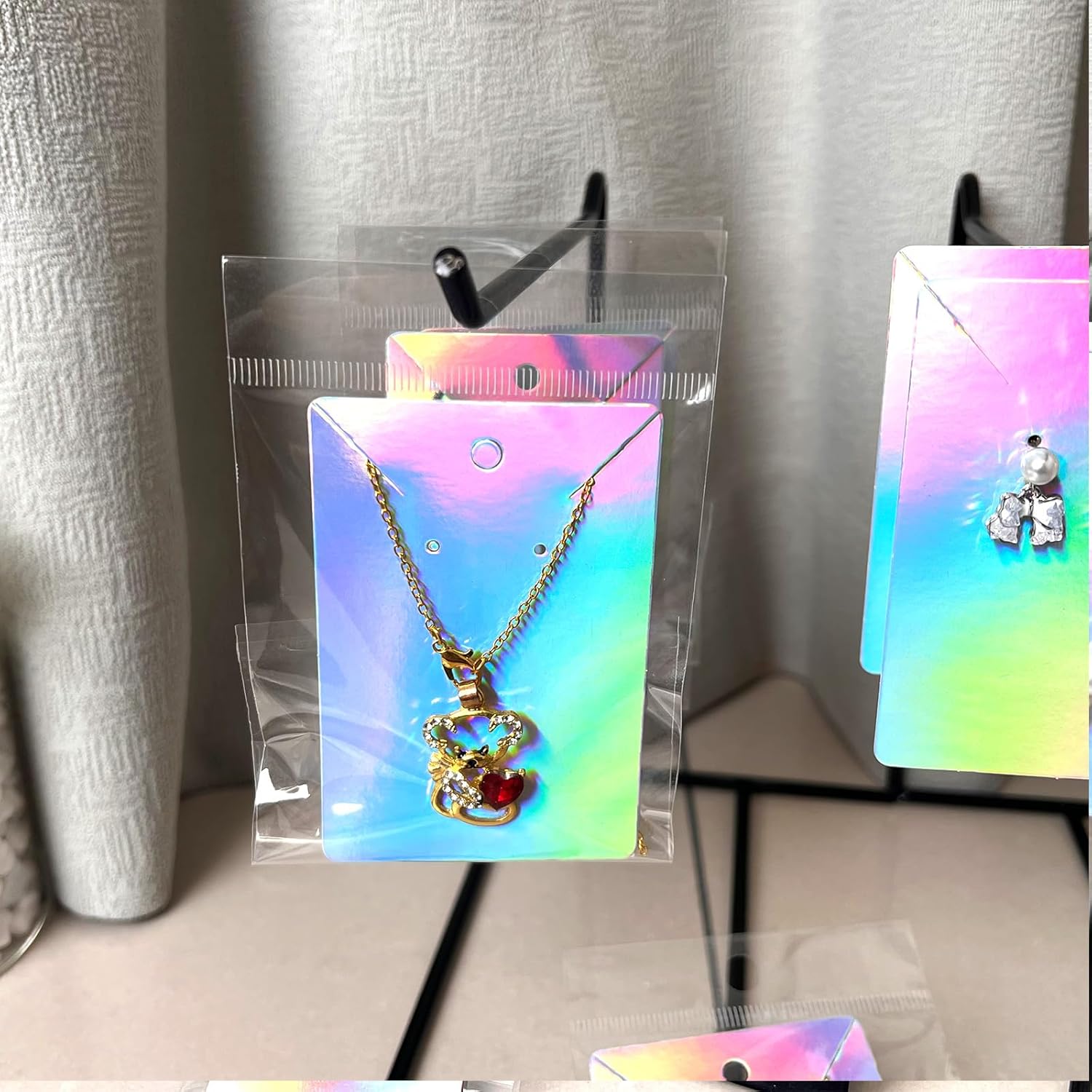 300pcs Holographic Earring Card Holder Paper Tags for DIY Ear Studs Necklace Jewelry Display,150 Set Earring Card with 150 Pcs Bags