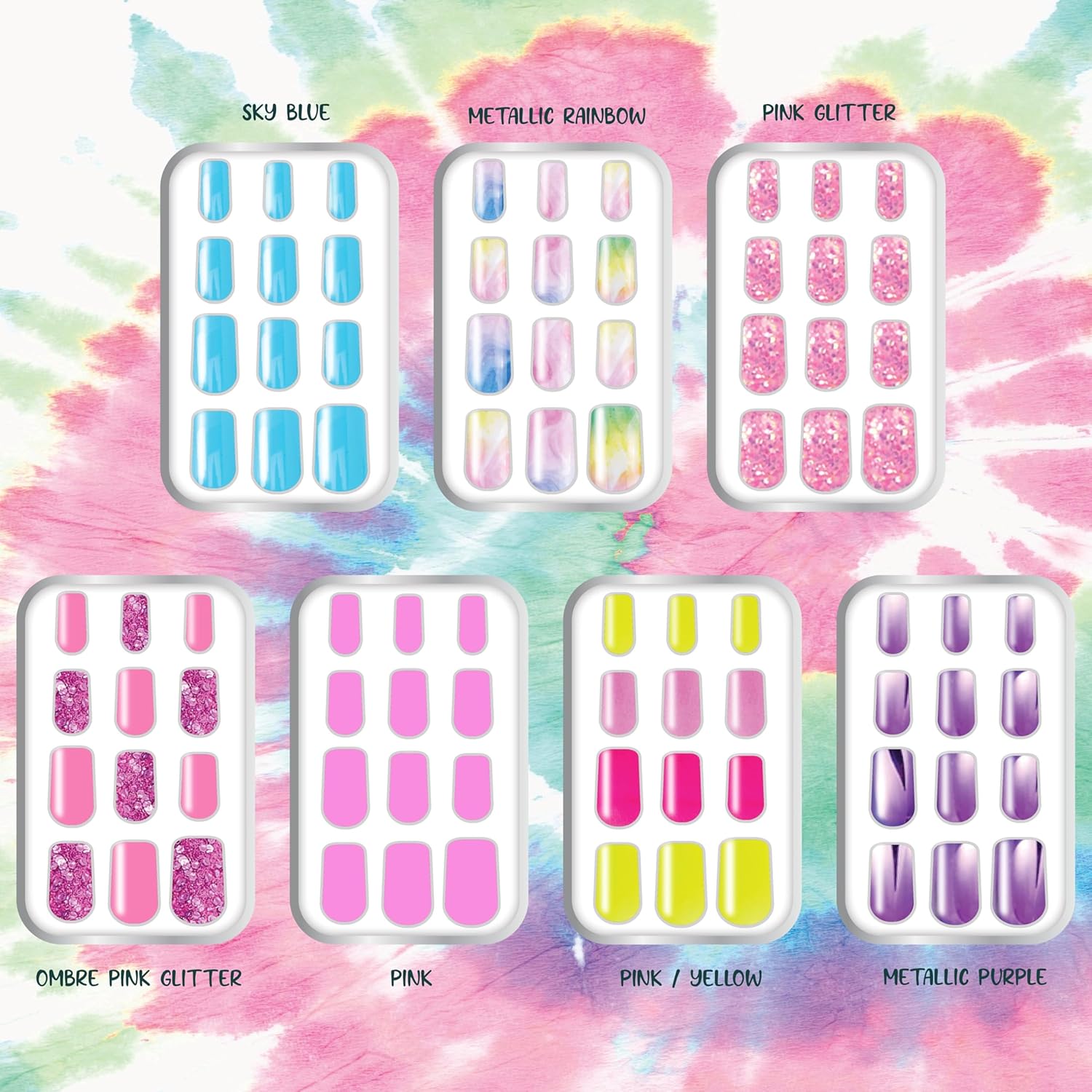 Why let your little girl do it on her own when you can have fun applying the different press on nails together? Playing with all the fun colors makes it a great bonding activity for young ones and adults. With 7 different sets of nails, your little one can get a manicure every day of the week!!