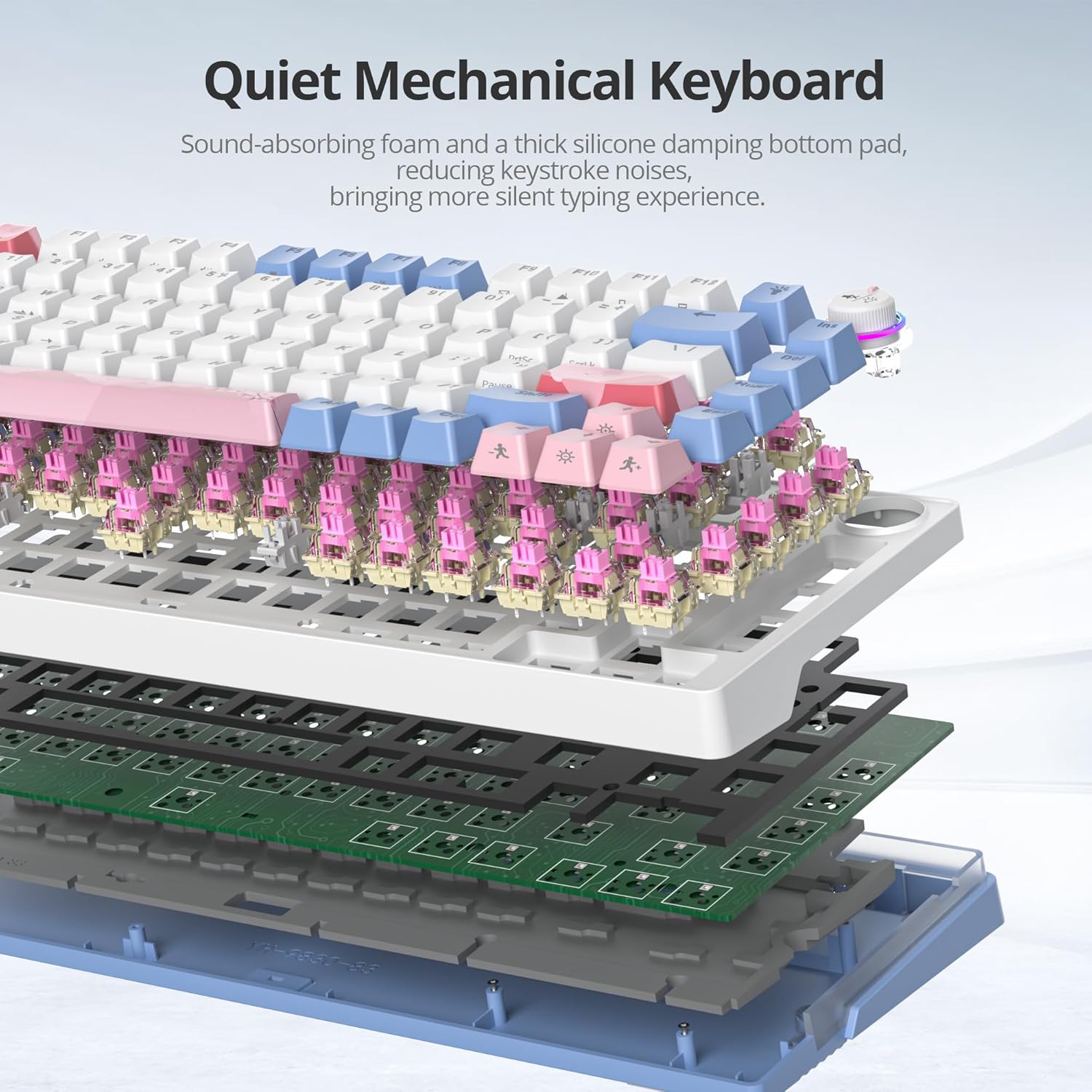iRoboosta 75% Mechanical Keyboard for Work/Game, RGB Hot Swappable Pink Keyboard