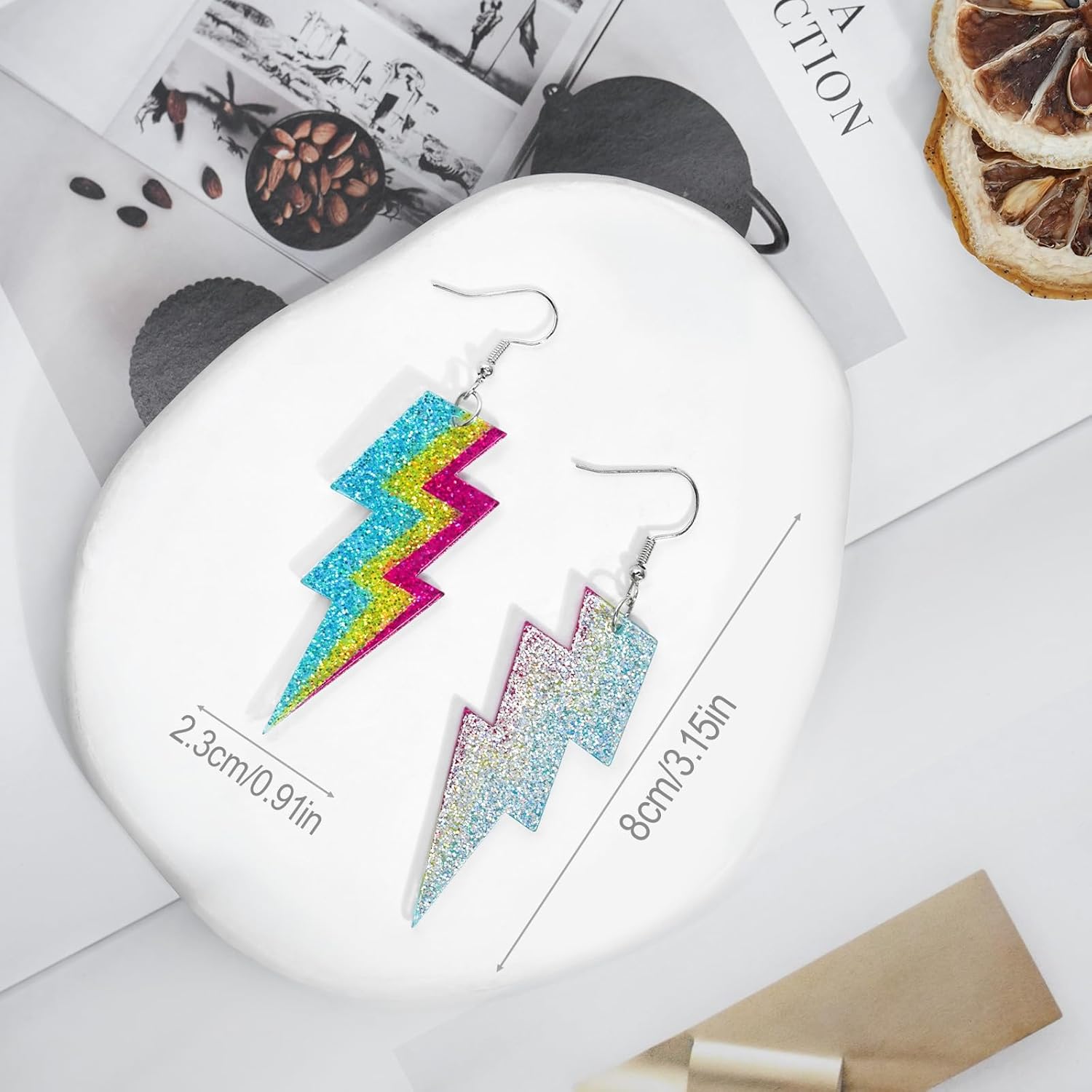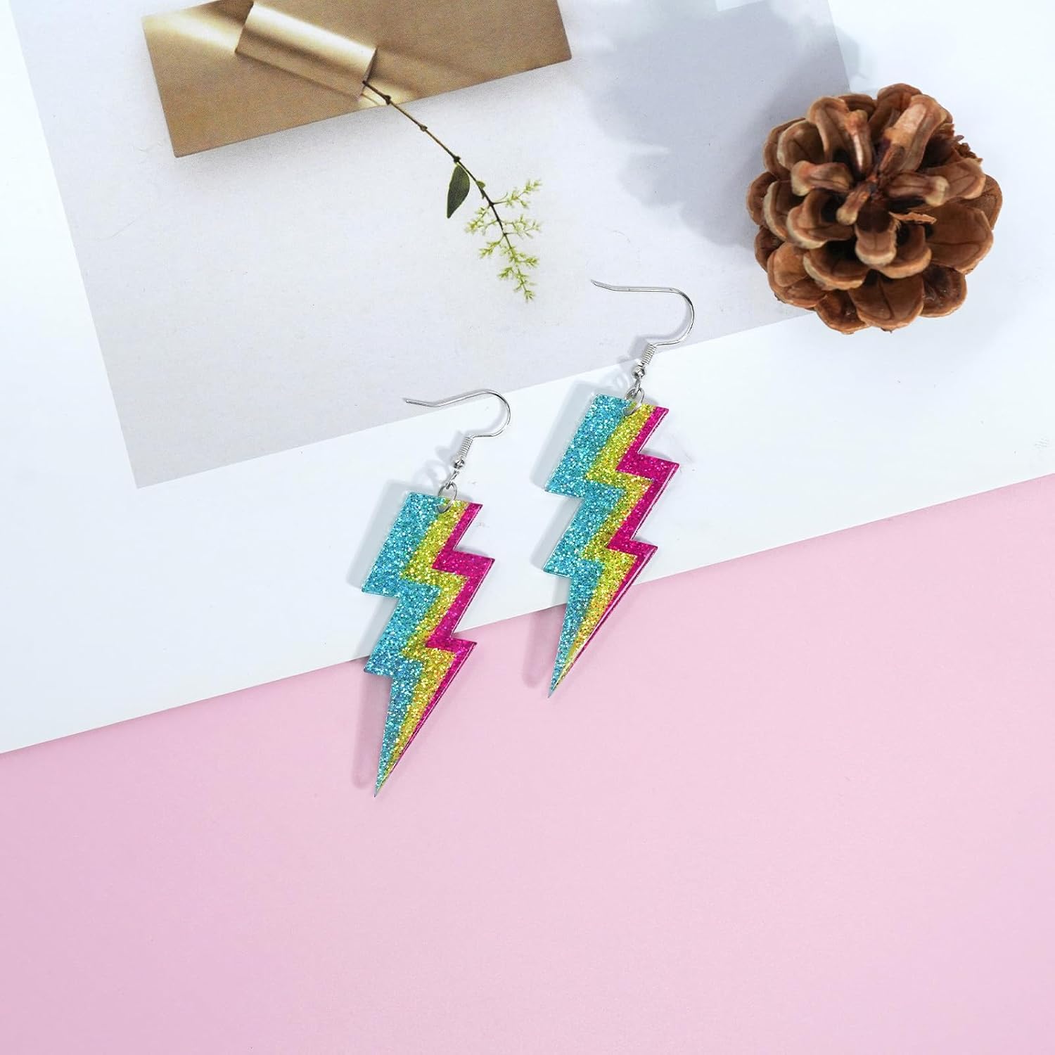 80s Neon Earrings for Women Acrylic Lightning Bolt Drop Earrings Retro 80s 90s Glow Party Accessories Neon Jewelry for Halloween Costume Outfit