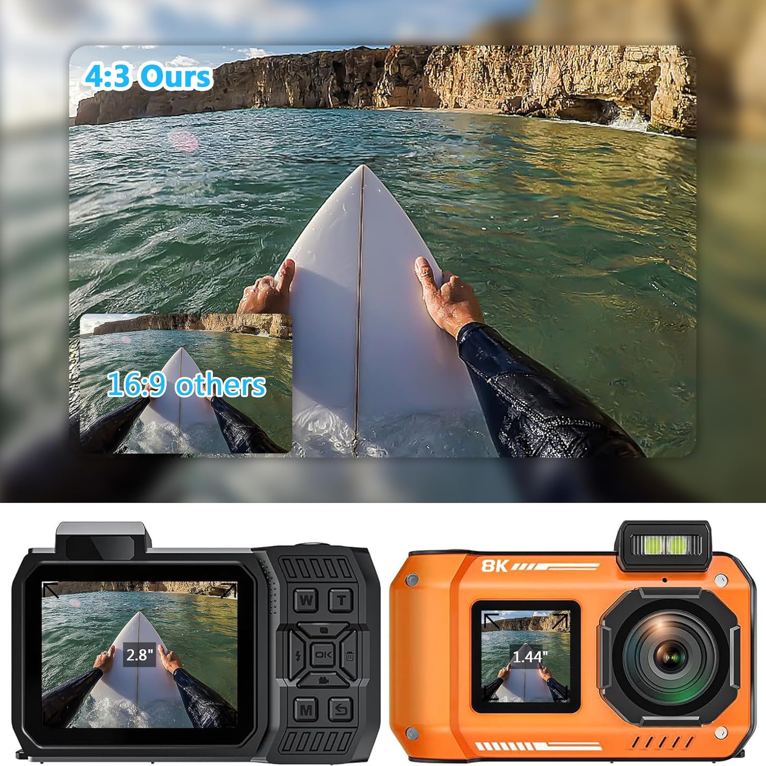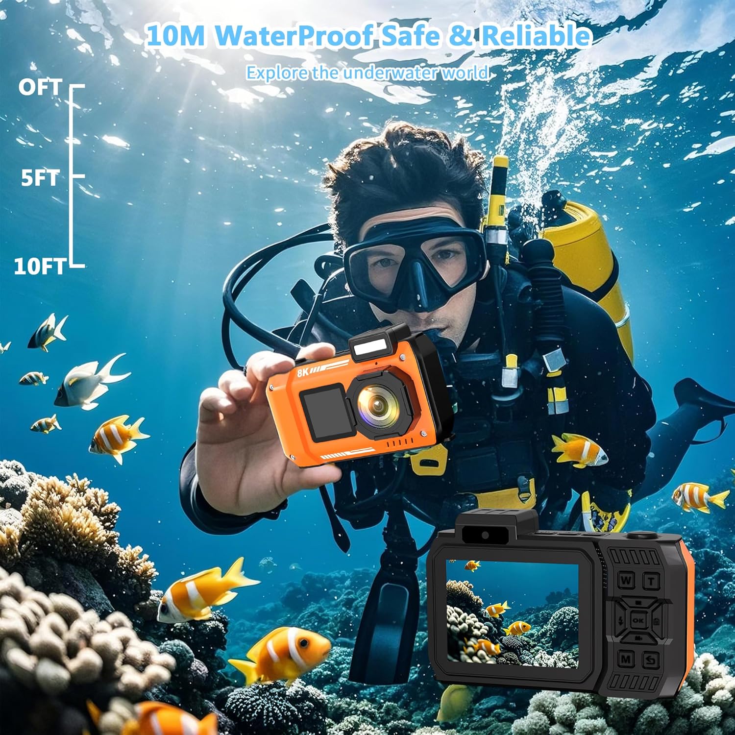 𝟖𝐊 𝐖𝐚𝐭𝐞𝐫𝐩𝐫𝐨𝐨𝐟 𝐂𝐚𝐦𝐞𝐫𝐚 𝐰𝐢𝐭𝐡 𝟕𝟎𝐌𝐏 𝐂𝐥𝐚𝐫𝐢𝐭𝐲: Capture every moment in stunning 8K UHD with sharp 70MP photo quality. This 8K waterproof camera underwater is perfect for snorkeling and diving, bringing landscapes, aquatic life, plants, fish, and coral into vivid detail.