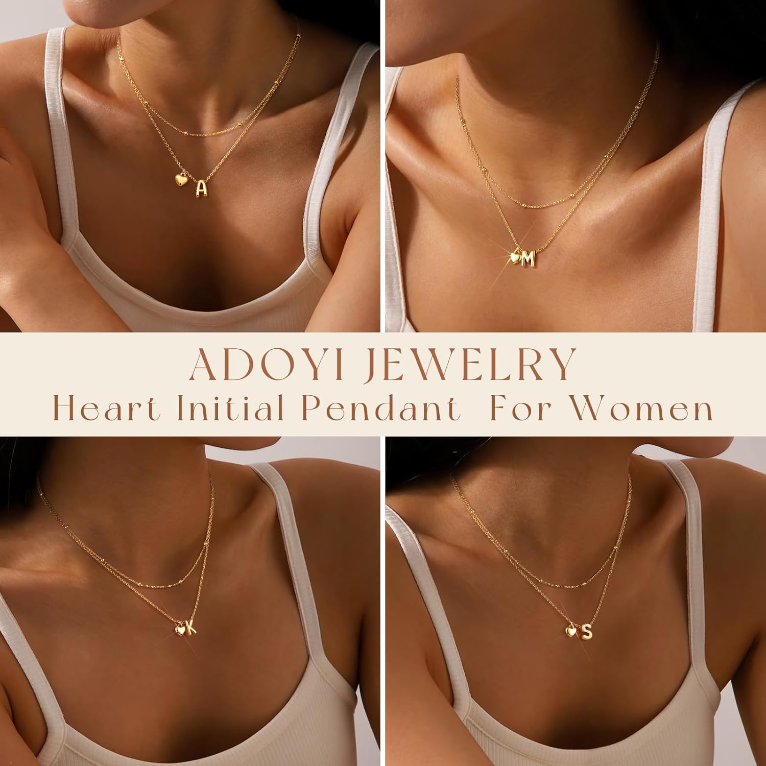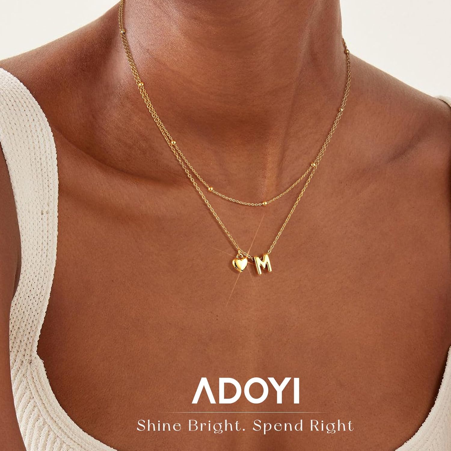 adoyi Gold Necklace for Women Layered Bubble Heart Letter Initial Necklaces for Women Trendy Jewelry 14K Gold Plated Chain Chunky Name Necklace Stack Charm A-Z Pendant Set Jewelry Gifts