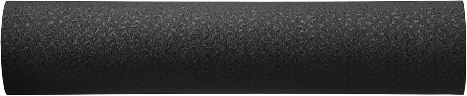 Multi-purpose exercise mat in black; ideal for yoga, Pilates, and general fitness
