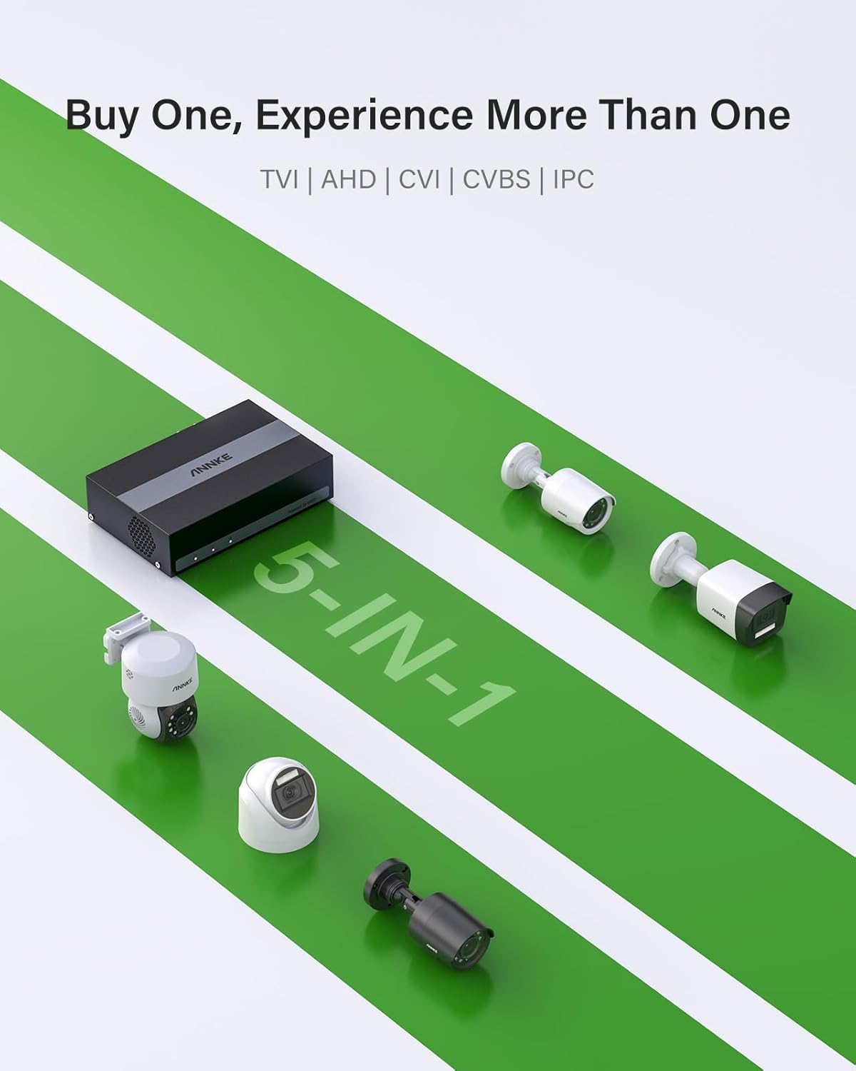 【3K Lite Hybrid eDVR】This security camera DVR recorder supports 3K@20fps/5MP @20fps TVI cams/1080P AHD/CVI/CVBS analog cameras, and two 6MP IPCs. Note: This DVR is recommended to be used in conjunction with ANNKE cameras for an enhanced user experience.