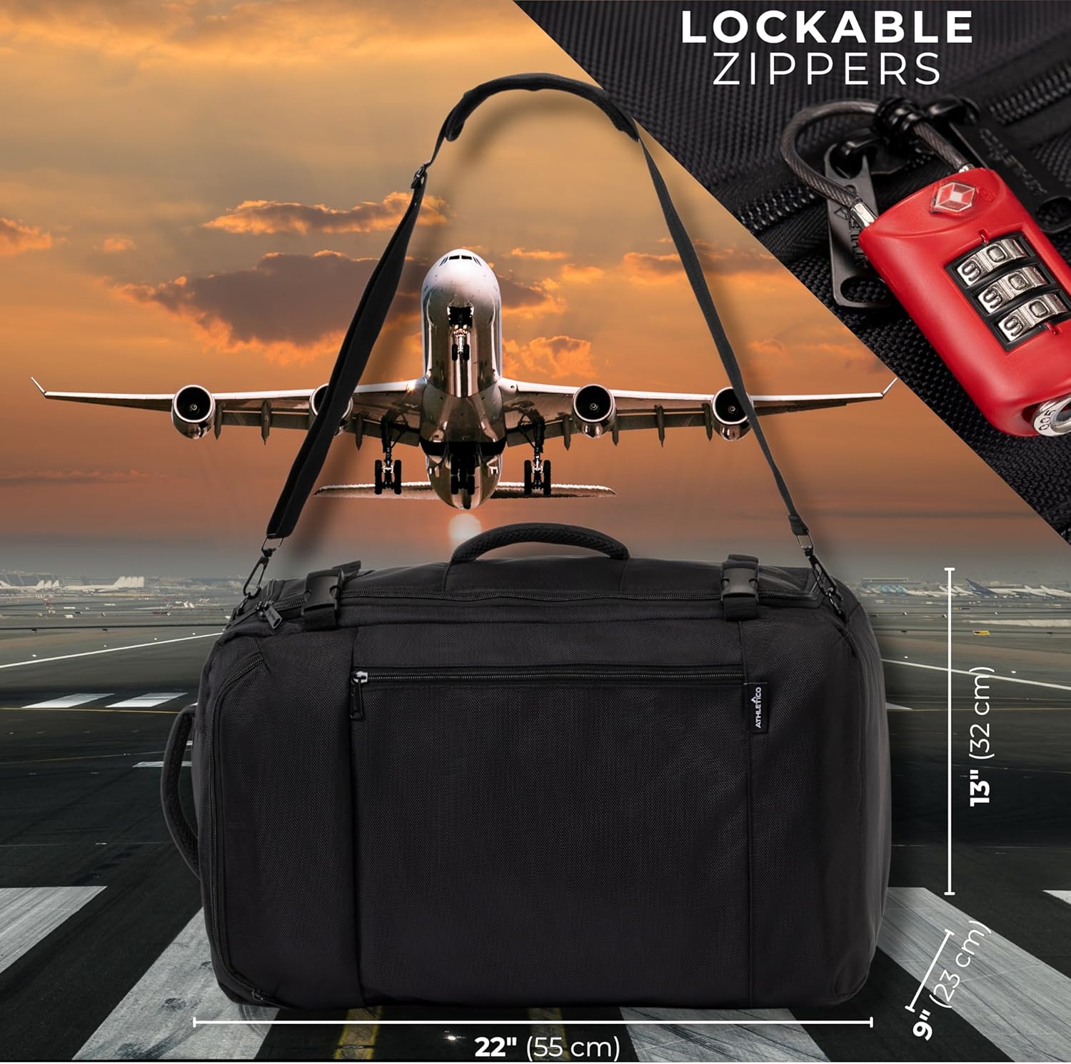 Travel like a PRO. Goes from backpack to airport to closet. Sneaker duffle with built-in closet hangers to hang bag at hotel closet rodSneaker duffle with built-in closet hangers to hang bag at hotel closet rod