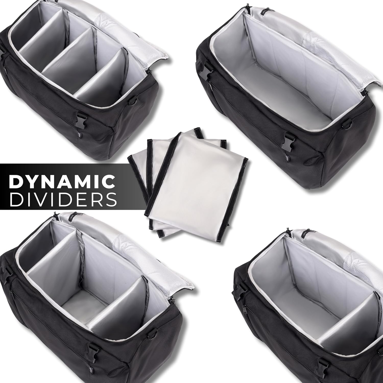Configure it your way with 3 adjustable dividers 3 dynamic dividers to configure the bag anyway you want. Hook and loop keep shelves in place3 dynamic dividers to configure the bag anyway you want. Hook and loop keep shelves in place