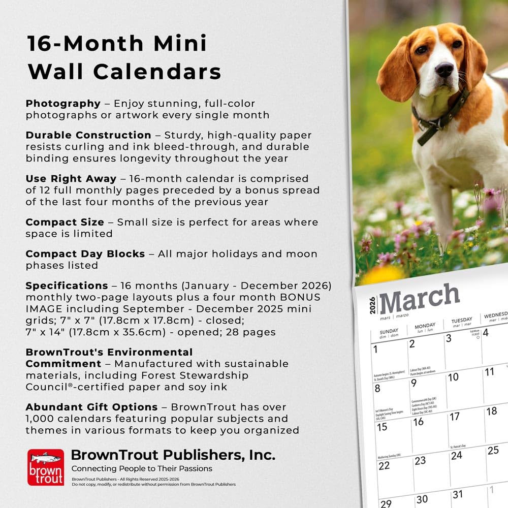Beagles | 2026 7 x 14 Inch (Hanging) Monthly Mini Wall Calendar | BrownTrout | Animals Dog Breeds