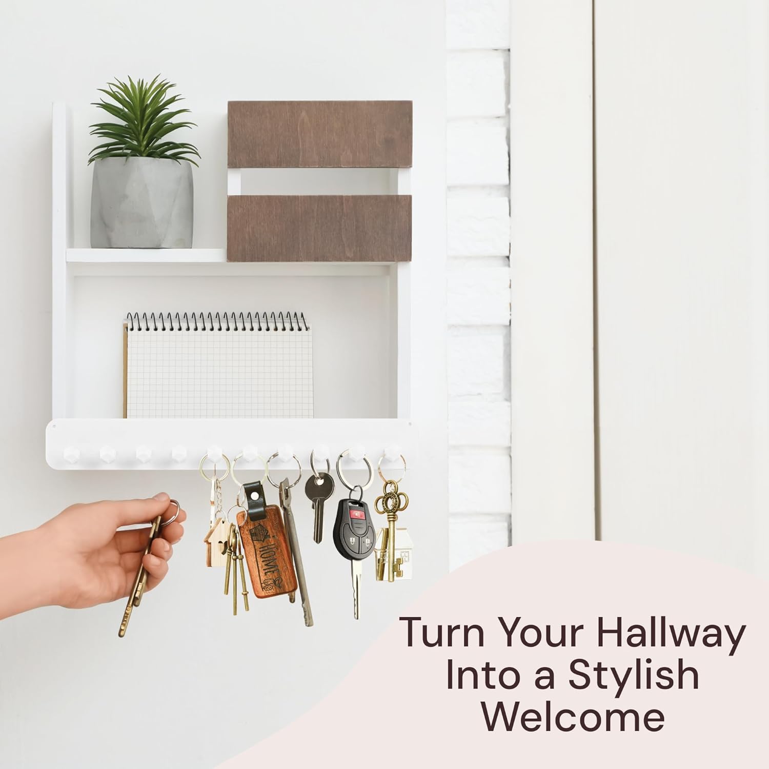 Stunning Design Appeal: Each white necklace holder wall mount measures 10.5″ wide by 1.5″ tall, featuring a classic design with diamond-shaped hooks, giving you plenty of room between necklace hooks to hang thicker chains. This sleek jewelry organizer for women brightens any room and outshines traditional jewelry boxes and organizers