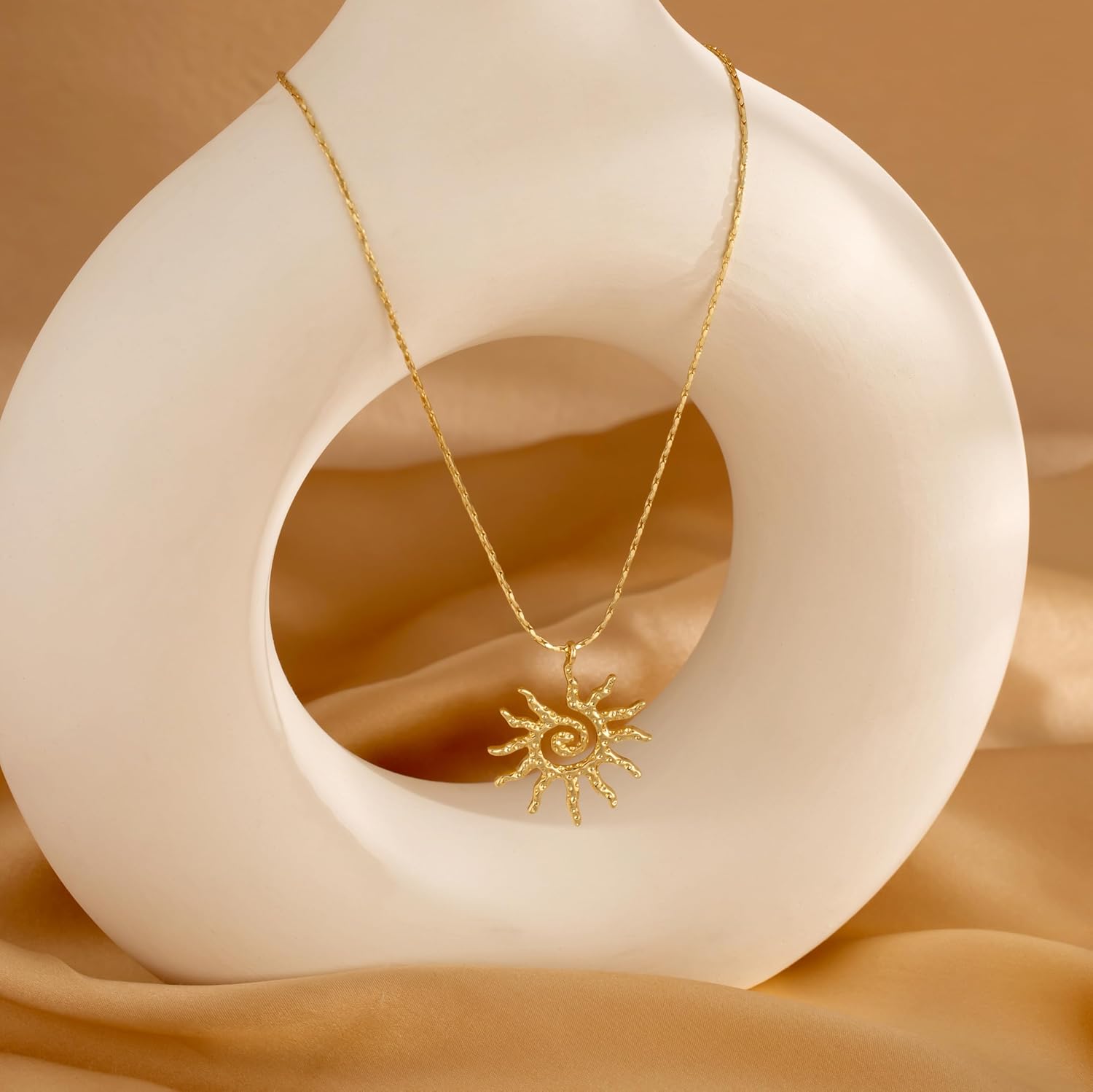 CHESKY Layered Necklaces for Women Trendy,Dainty 14K Gold Pendant Necklace Simple Layering Necklace for Women Non Tarnish Hypoallergenic Sun Gold Necklace Stack Gold Jewelry for Women Gifts
