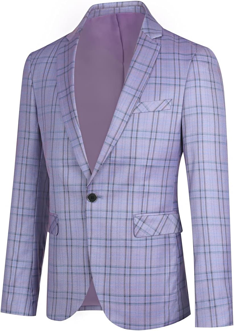 Cloudstyle Mens Formal Suit Jacket Blazer Plaid 2 Button Closure Prom Business Sport Coat