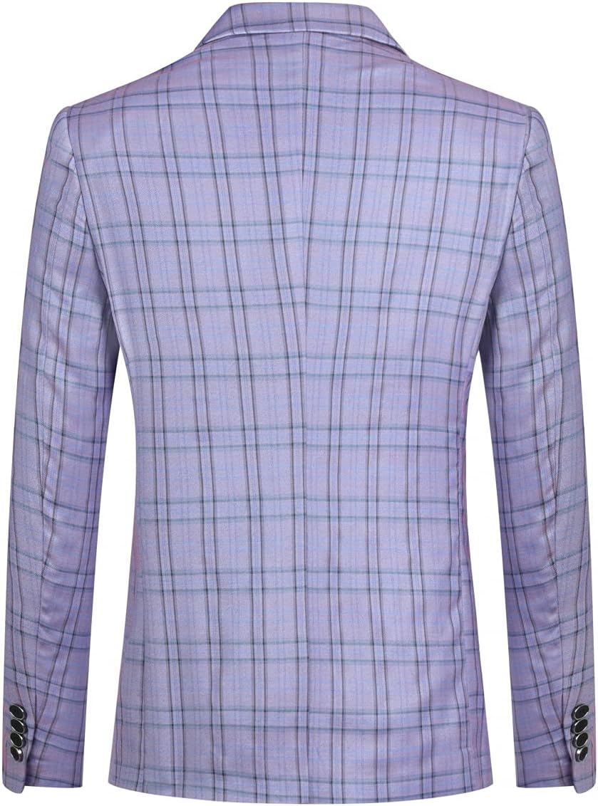 Mens Slim Fit Plaid Suit Blazer