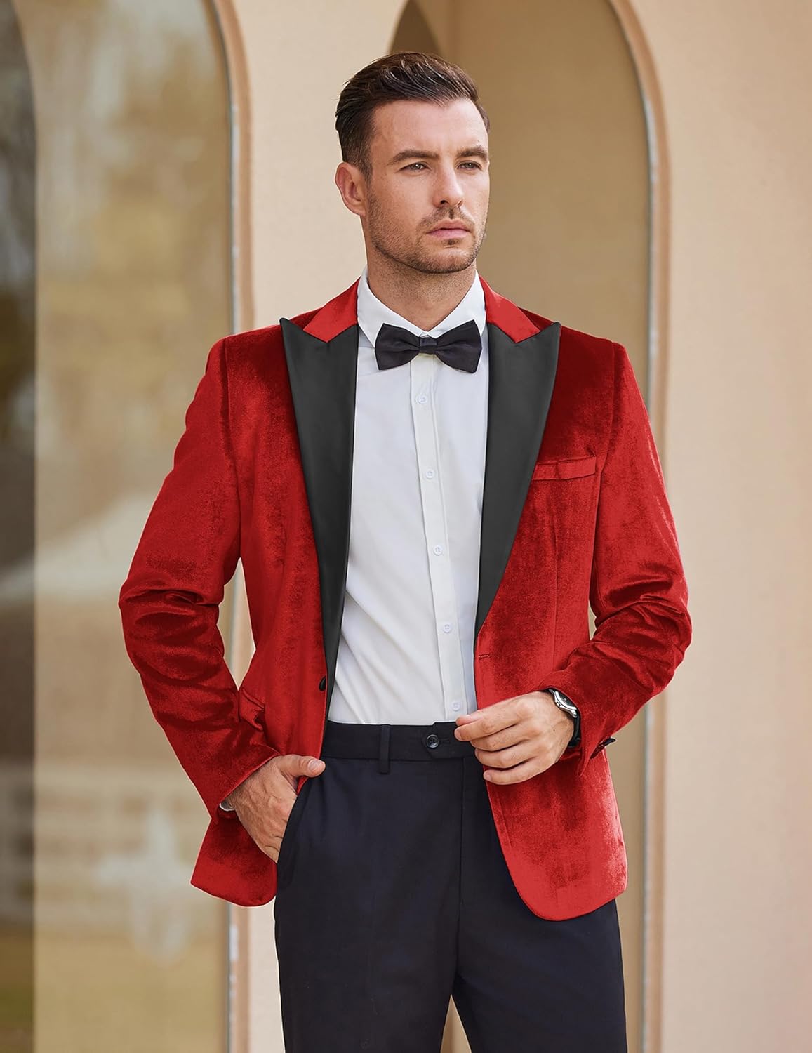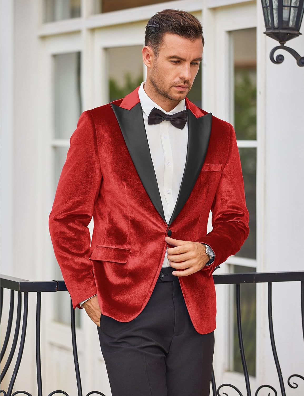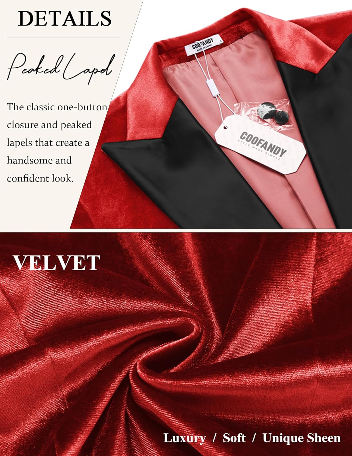 COOFANDY Mens Velvet Blazer One Button Dinner Jacket