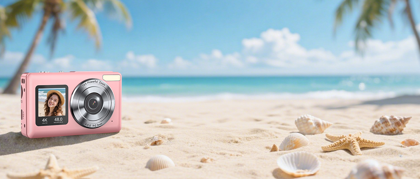 📷【Enjoy the World through Dual Screens】 The **2.4-inch + 1.3-inch IPS screens** of our compact camera ensure vibrant viewing, making it super easy to snap selfies and perfect shots, Don’t worry about the wrong selfie posture anymore! Even when you’re trying to impress your friends with your vlogging skills.