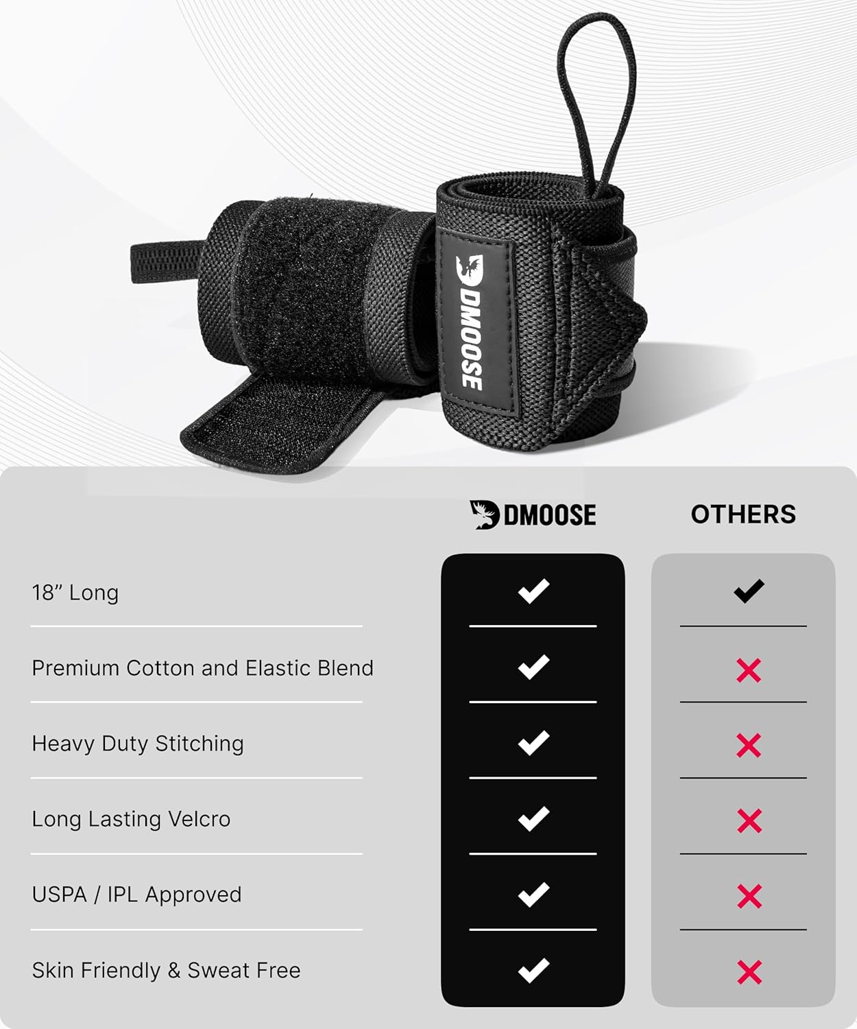 DMoose Fitness Wrist Wraps for Weightlifting 18″ – Heavy Duty Gym Wrap with Hand Thumb Loop for Support & Pain Relief, USPA Approved Powerlifting, Weight Lifting Wrist Straps for Men & Women Work Out