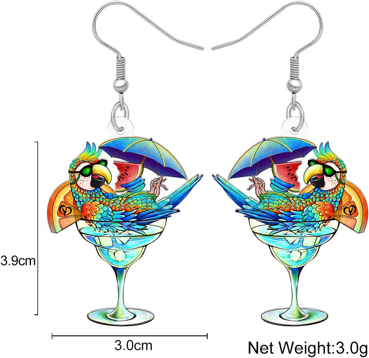DOWAY Cute Acrylic Macaw Parrot Earrings Dangle Charms Birds Accessories for Women Summer Animals Jewelry Gifts