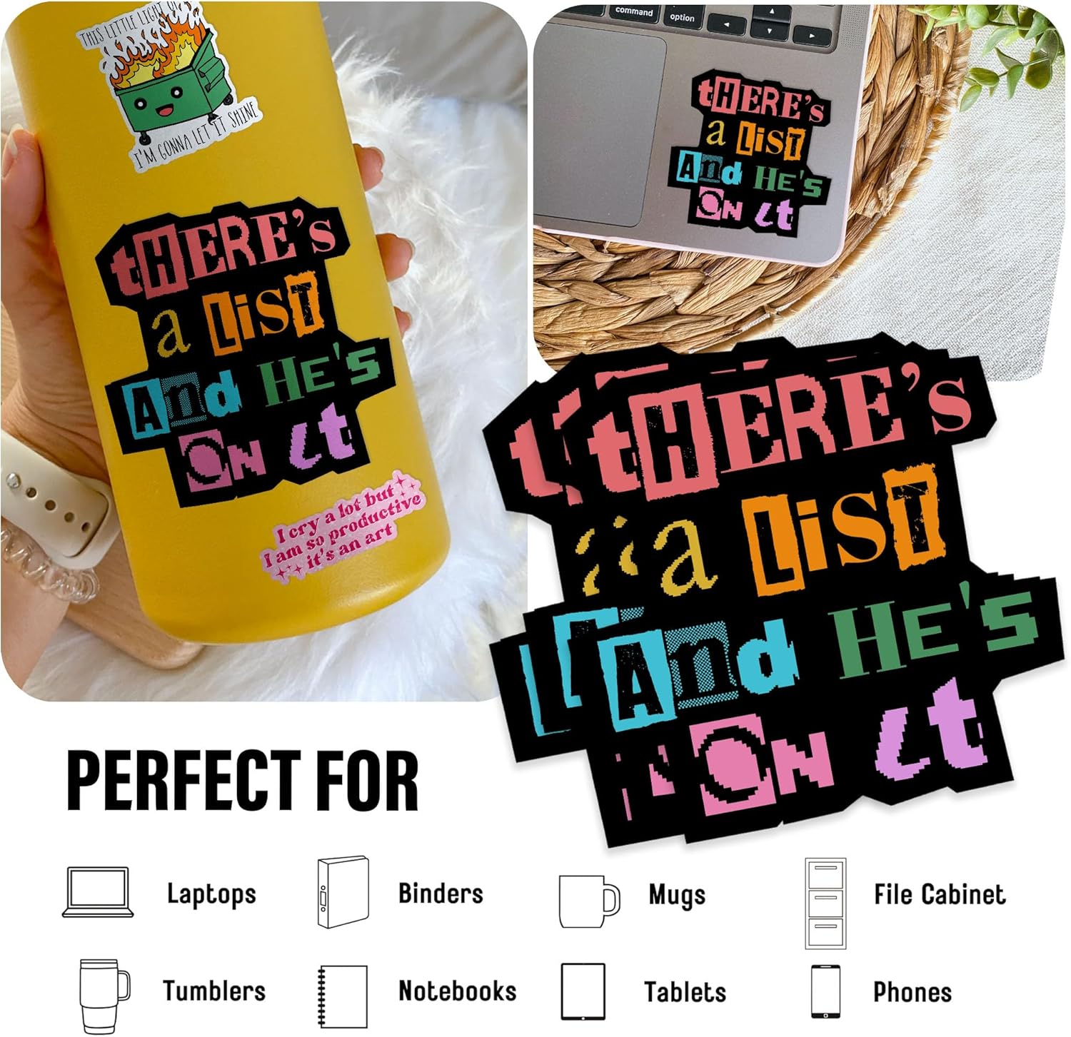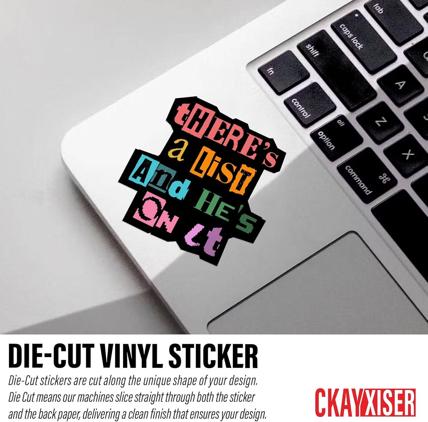 Hes On The List Sticker Subtle FDT Political Statement Humor Waterproof Die-Cut Vinyl Stickers for Water Bottle Laptop Hard Hat Kindle Sticker Decal Decor Gifts