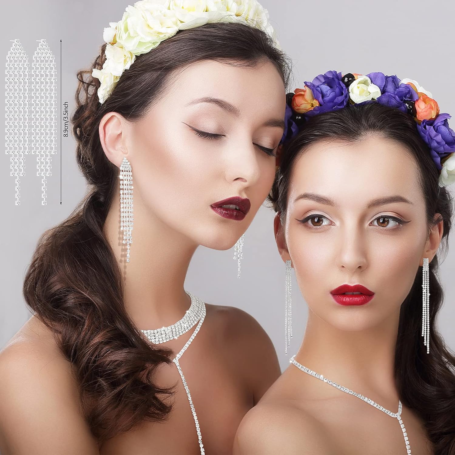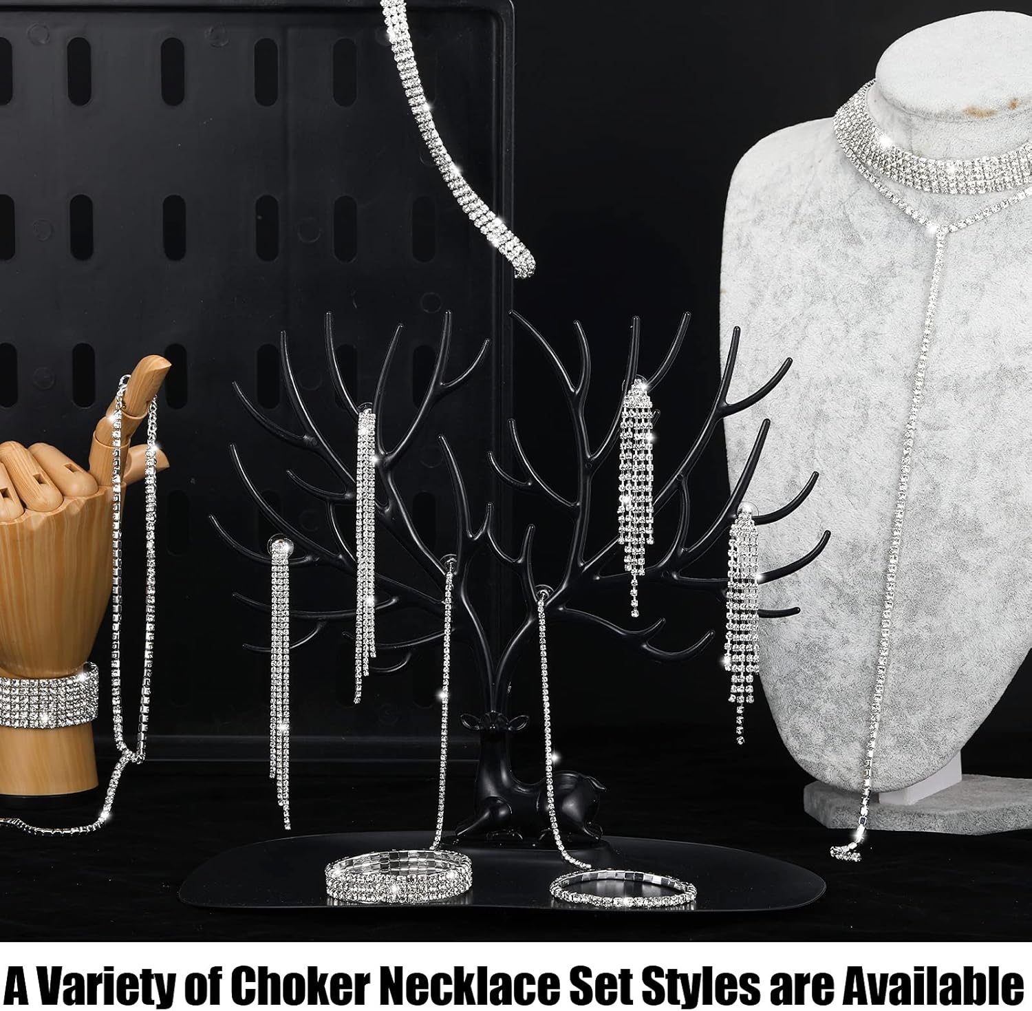 Hicarer 3 Sets Rhinestone Jewelry Set for Women Including Rhinestone Choker Necklace Bracelet Bangle and Earrings for Girl Wedding Birthday Party Accessories