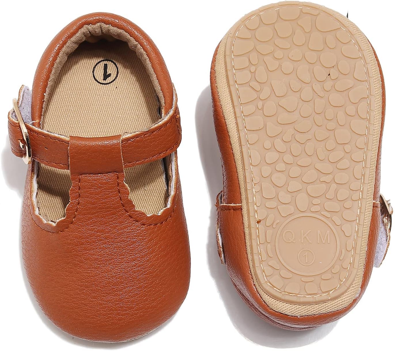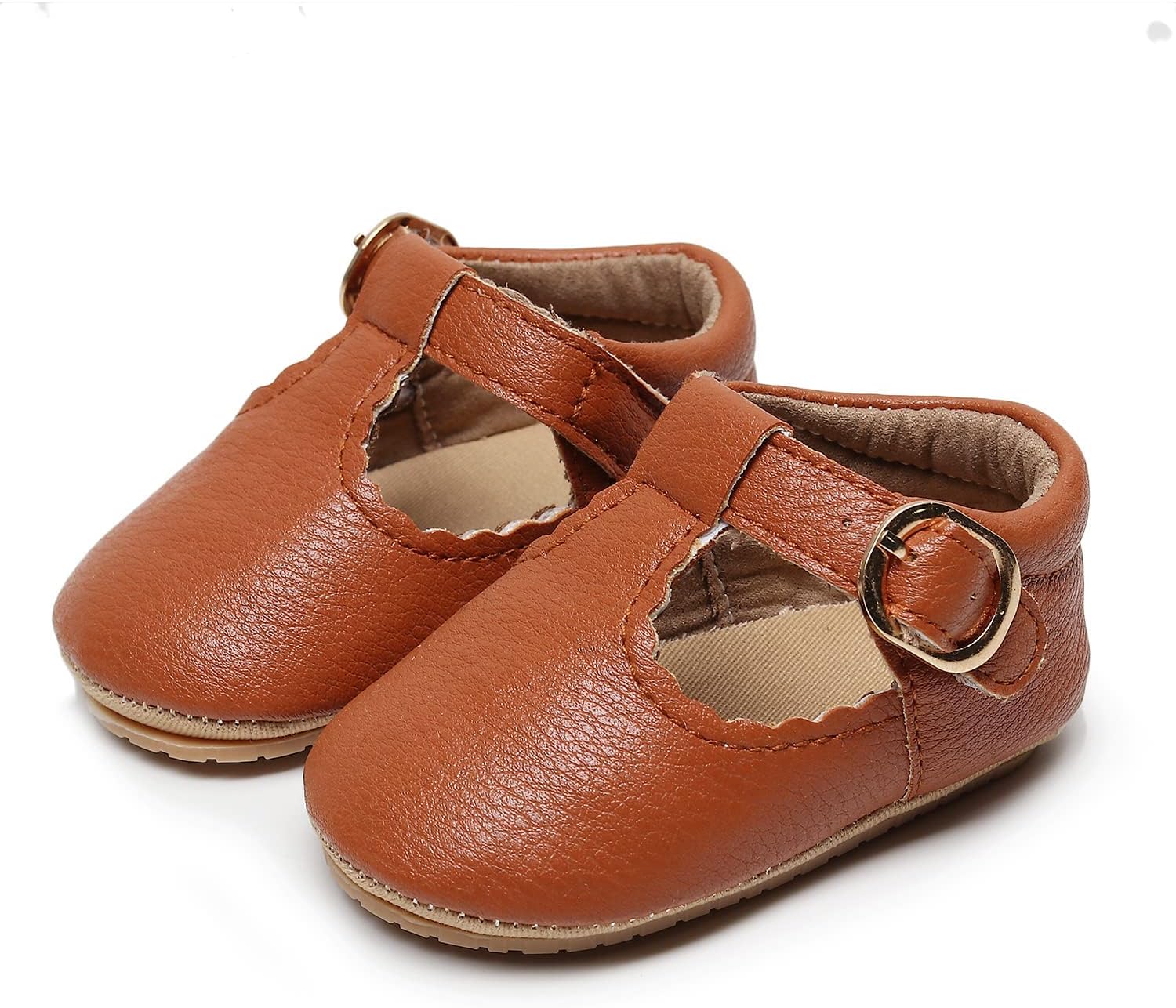 HONGTEYA Infant Baby Girls Mary Jane Flats Non Slip for Toddler First Walkers Soft Sole PU Leather Crib Shoes Sneaker Wedding Party Christmas Princess Dress Shoes Baby Moccasins Girls