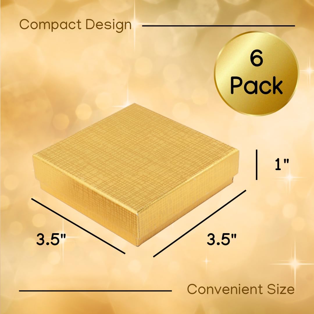 Jewelry Gift Boxes 6 Pack 3.5×3.5×1 inch Cardboard Jewelry Box, Cotton Filled Small Gifts Boxes With Lids | For Earring, Bracelet, Necklace, Gift Card Boxes For Presents