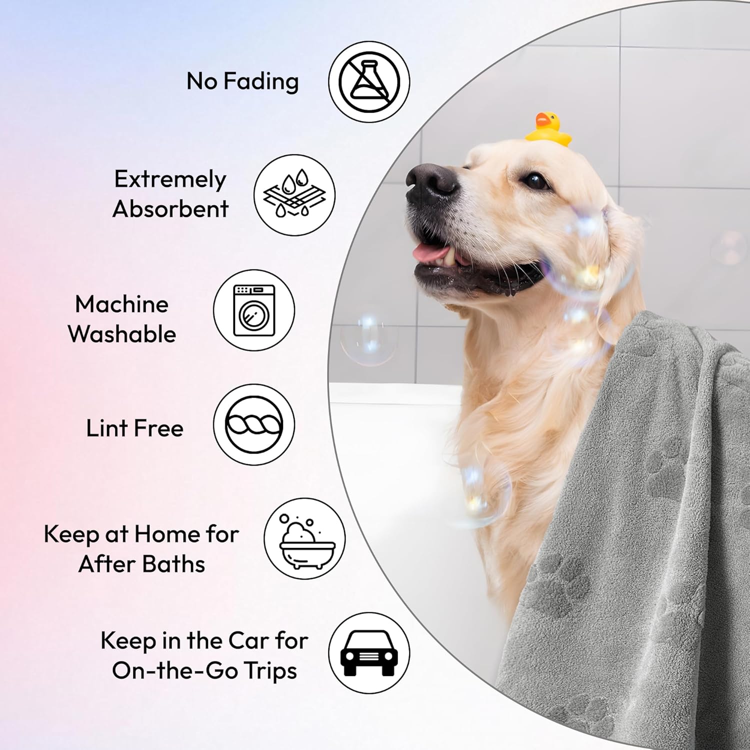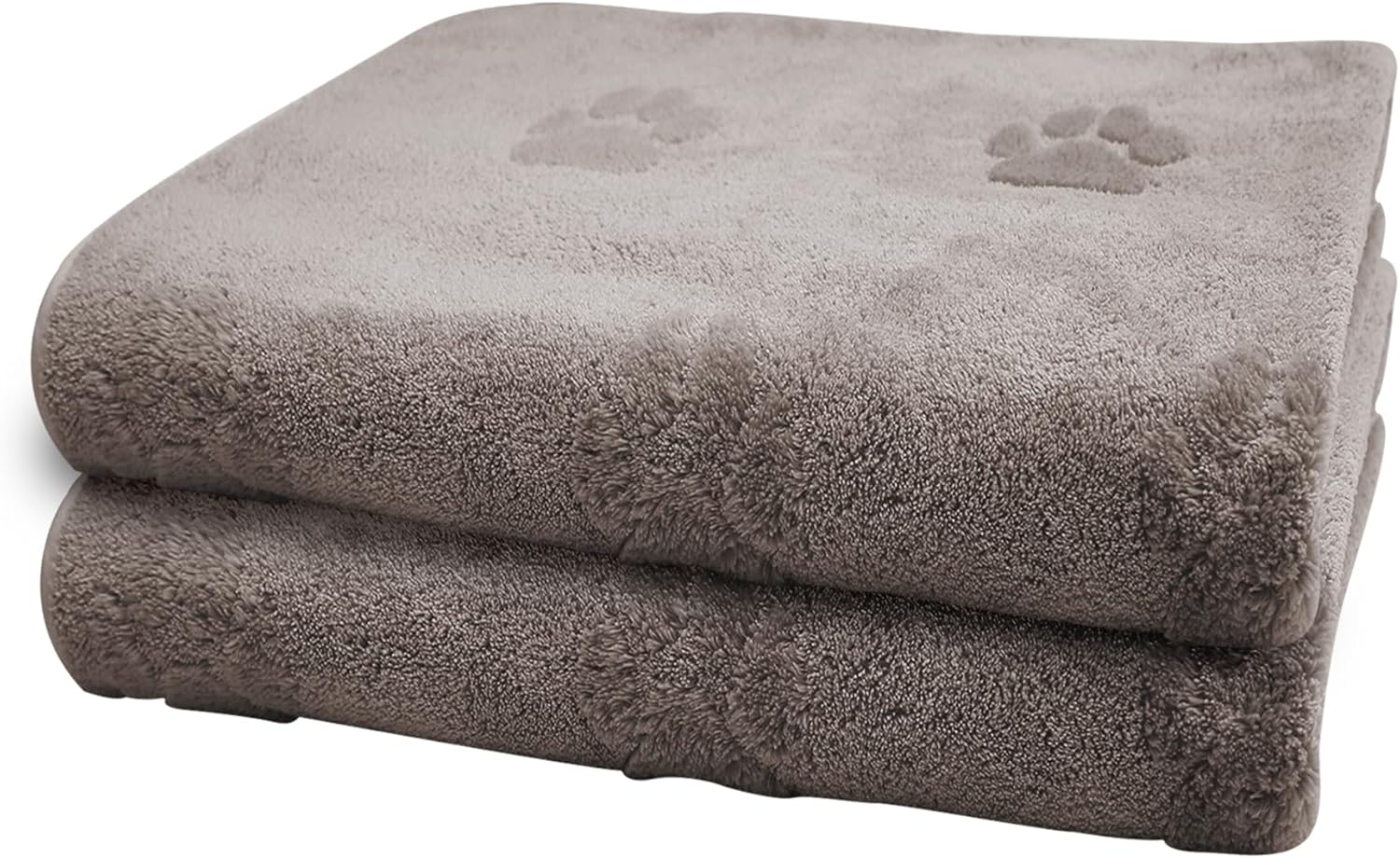 JML Microfiber Bath Towel for Kids, Pet Towels for Drying Dogs Cats, Super Absorbent and Soft Fleece Pet Grooming Blanket for Shower & Bath Supplies, 2 Pack, 40″ x 27.5″,Gray