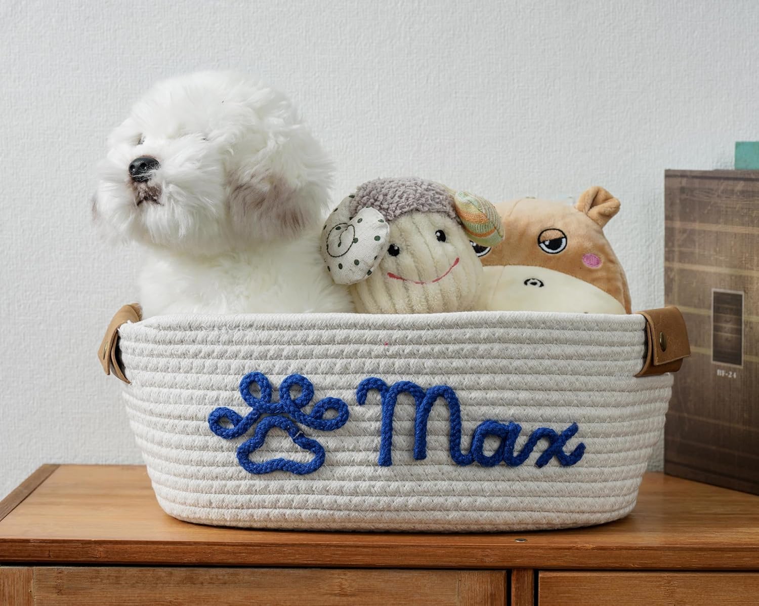 JUPPE Custom Pet Dog Toy Basket with Personalized Name, Cat or Dog Toys and Storage Organizer Customize Dog Toy Gift Cotton Rope Basket Gift (For pet)