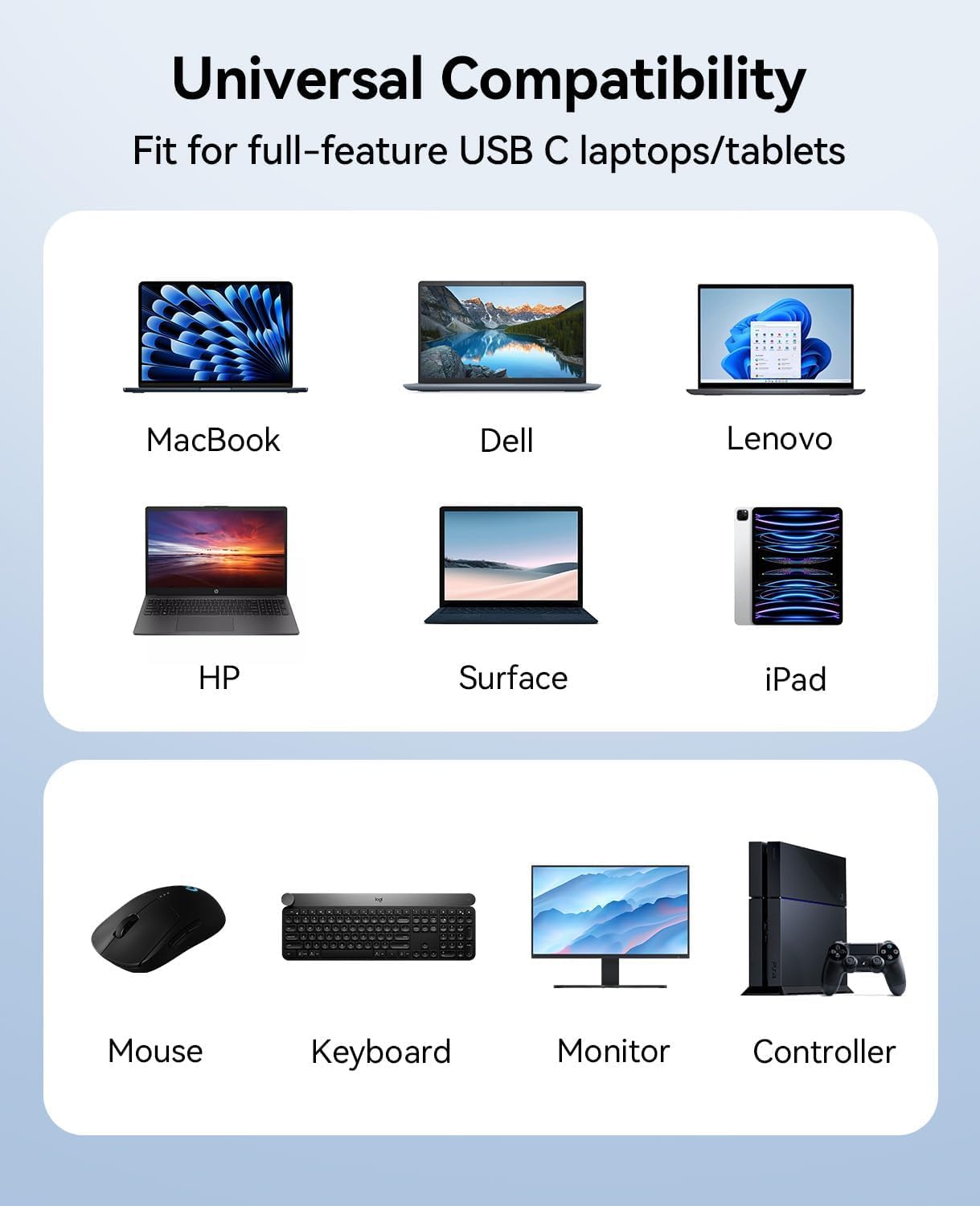 Universally laptop Docking Station – This USB C hub works with Thunderbolt 4/3, USB4, and other USB-C(support video output) laptops. Including MacBook Pro/Air M1/M2/M3/M4, Dell/HP/Lenovo/Surface/Asus/Acer, and other Windows and Chromebook laptops. The laptop dock is also compatible with tablets including iPads and Windows tablets that feature Thunderbolt or USB-C(support video output)