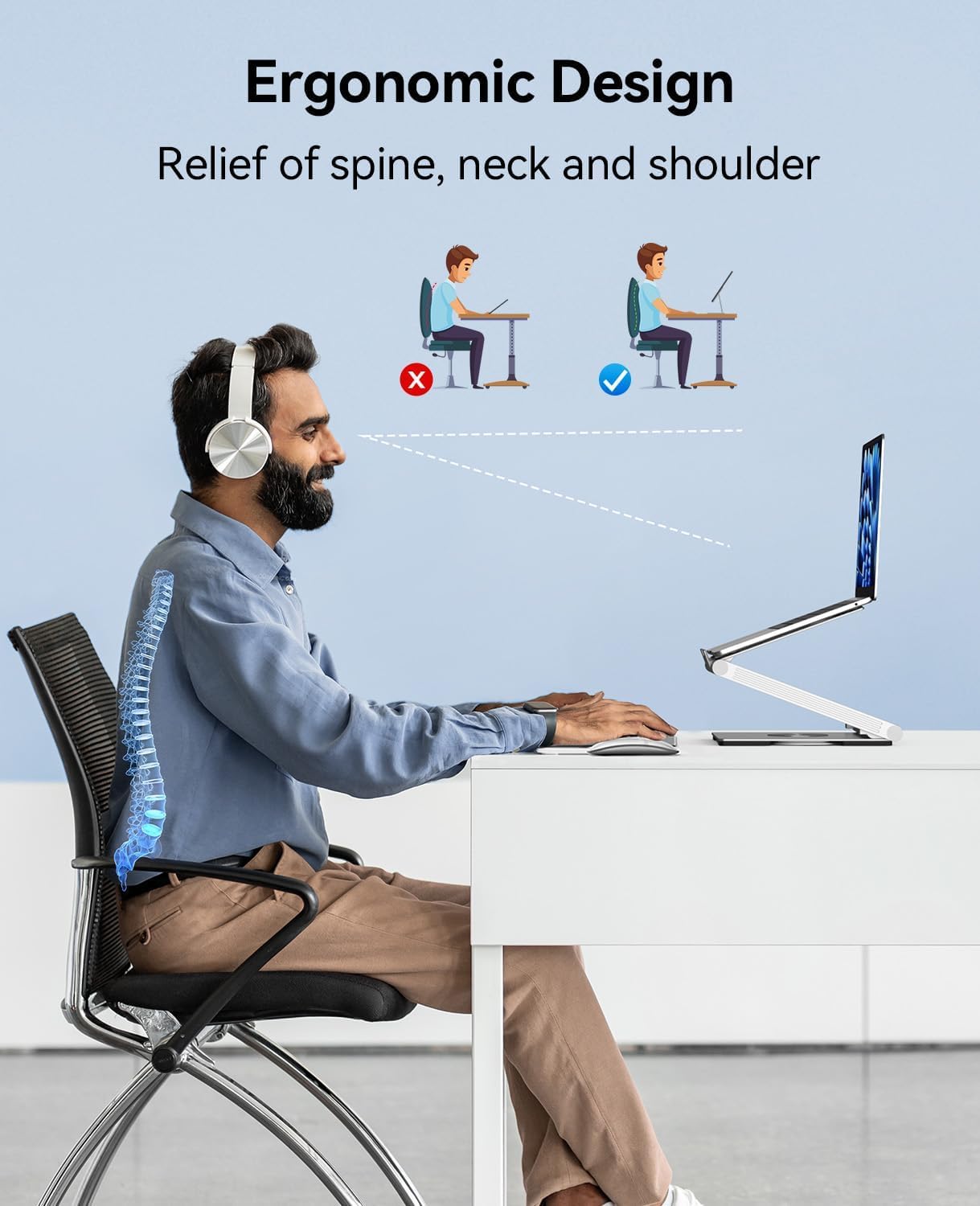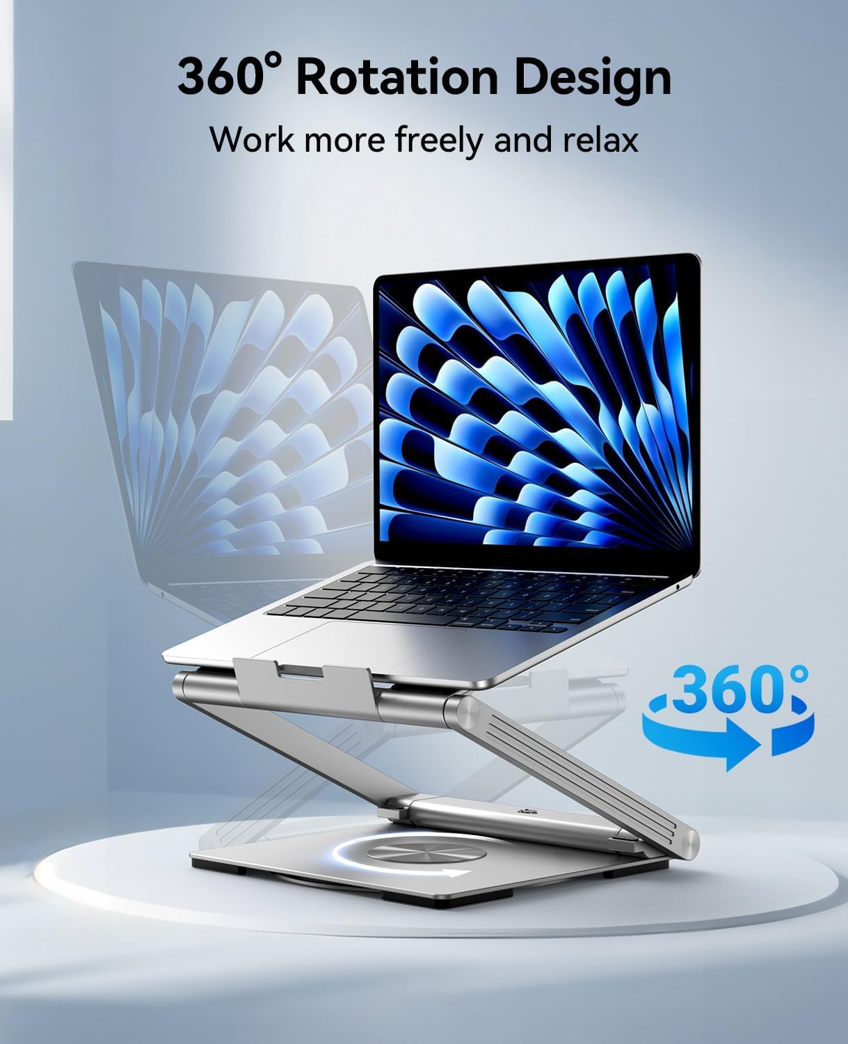 Efficient Heat Dissipation & 360° Rotation – The laptop stand docking stations feature ventilation openings for optimal airflow, keeping your laptop cool and prolonging the service life of the laptop; The bottom disc of this docking station stand for MacBook Pro can be rotated 360 degrees flexibly, makes your work more convenient and efficient, easy to share a screen with others during meetings or video chats