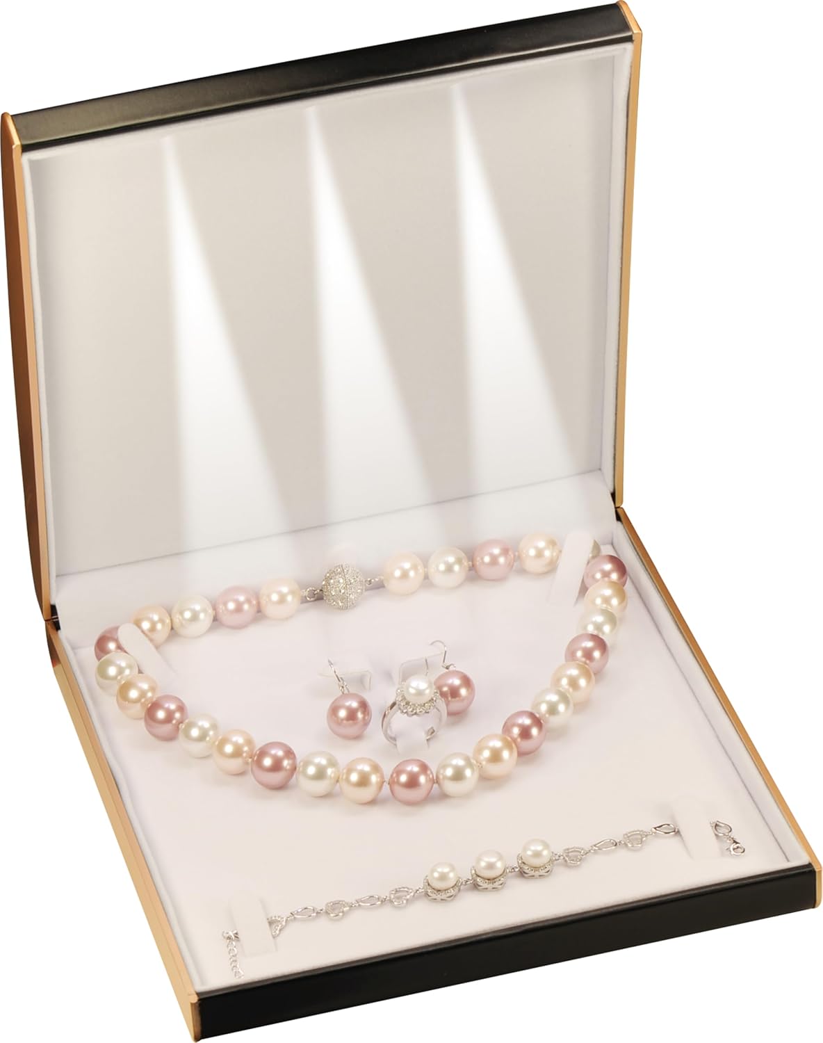 THREE LED LIGHTS: This LED big jewelry set gift box is equipped THREE LED lights, which will make your special jewelry bright and shinny and will make your wedding engagement jewelry sets gifts look luxury and brings a glowing and sparkling looking..