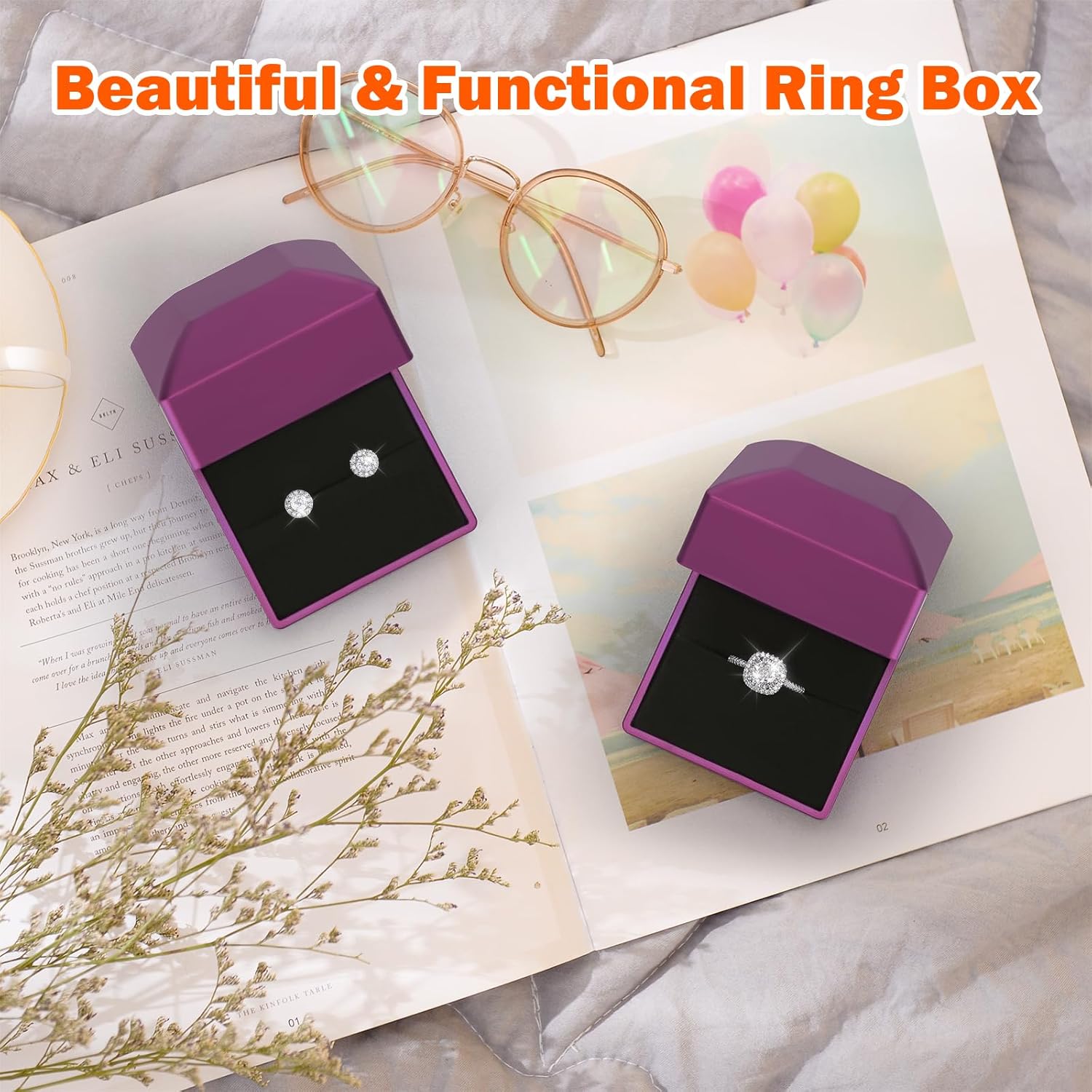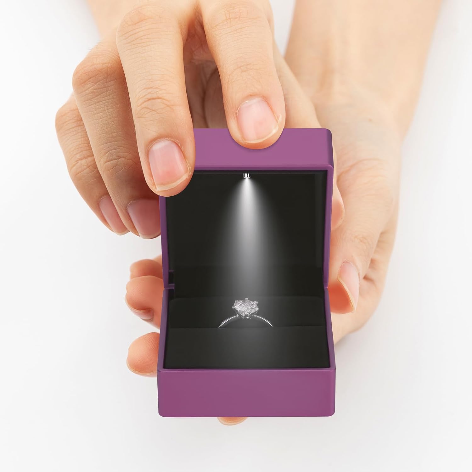 LED Ring Earring Box for Proposal, Wedding, Engagement, Luxury Jewelry Gift Box with LED Light, Jewellry Display Box (Purple)