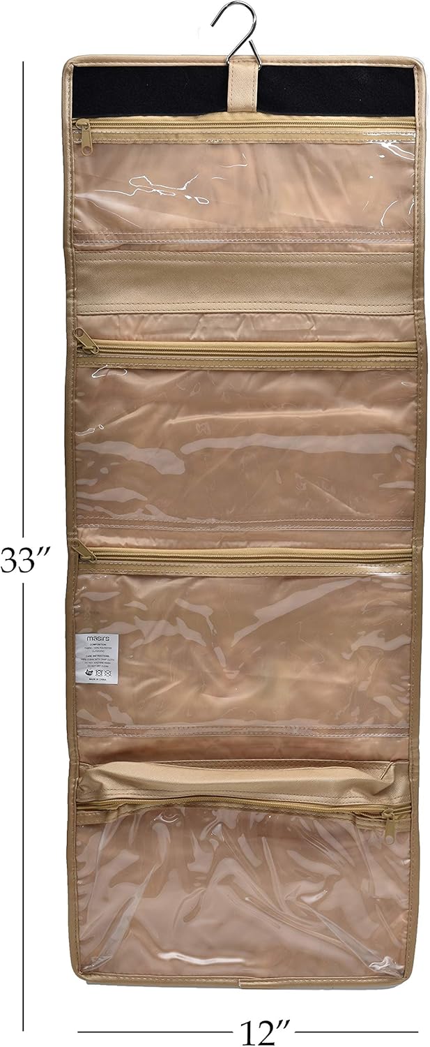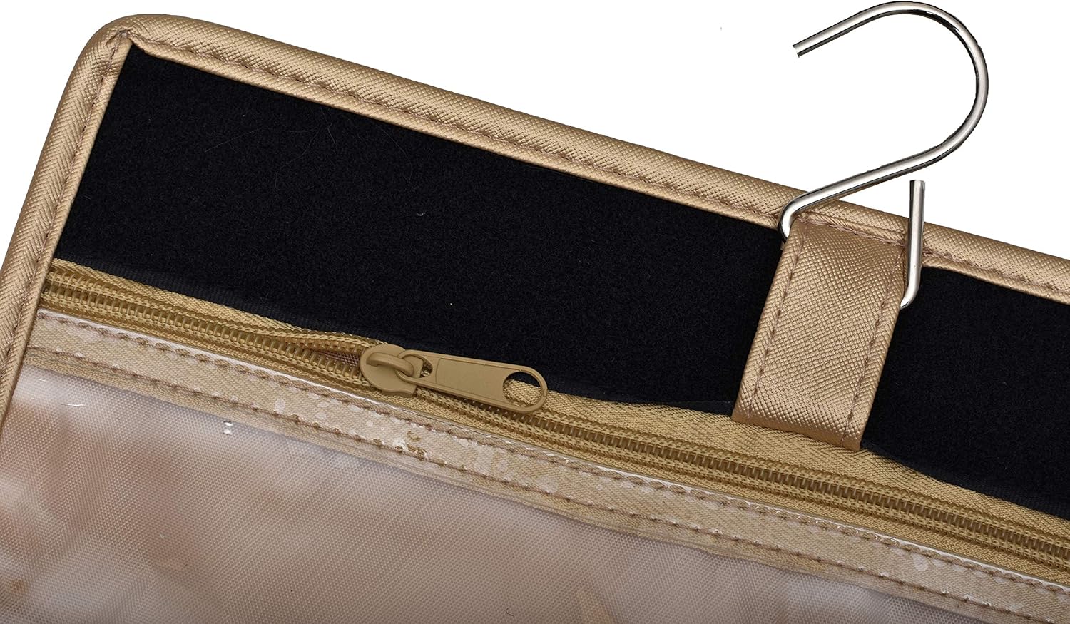 Masirs Hanging Travel Cosmetic Organizer – Streamline Your Cosmetics, Toiletries, and Jewelry while traveling. Clear Pockets with Zipper Closure and Hanging Metal Hook for Bathroom or Closet.