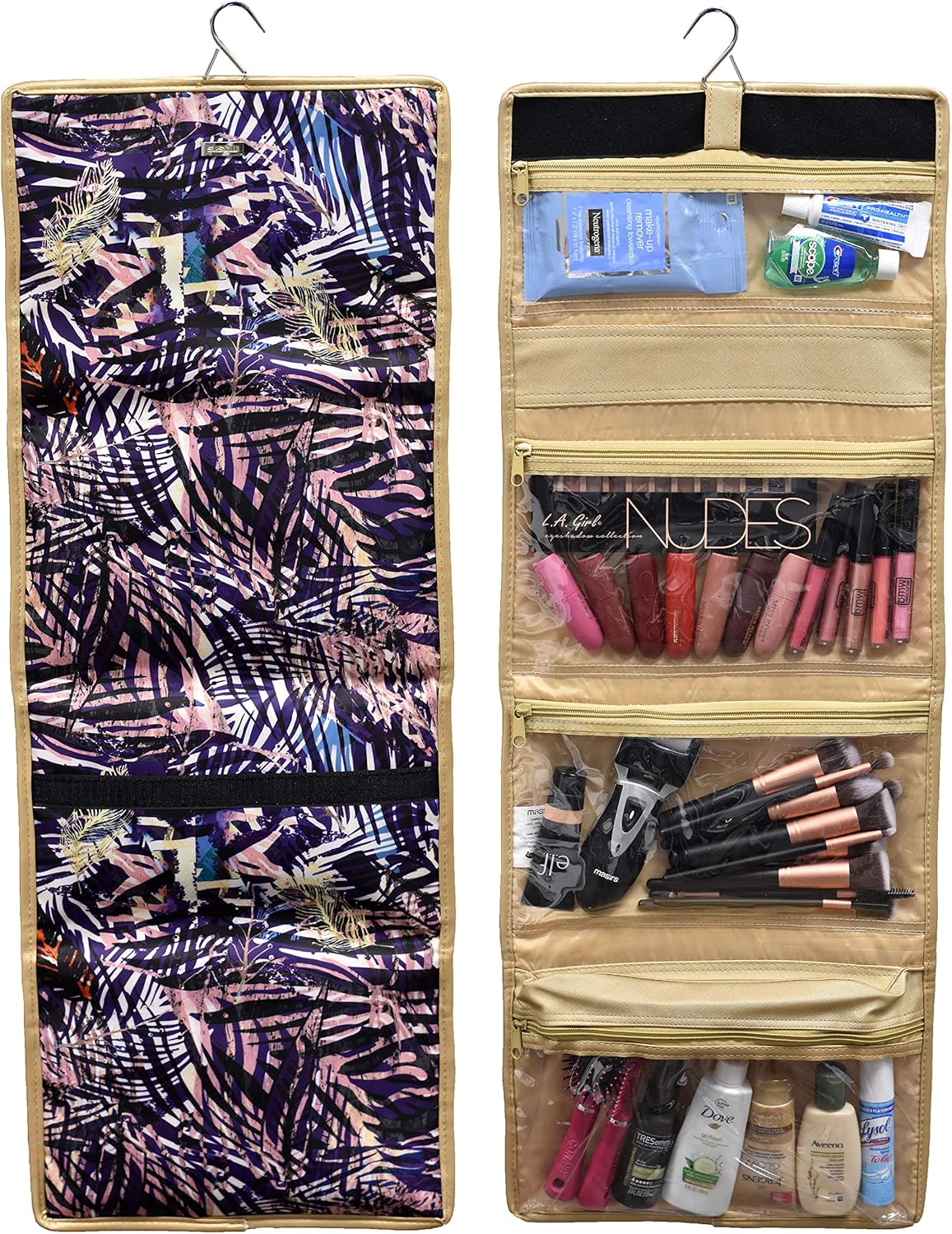 Travelers will especially enjoy the convenience of being able to pack up their toiletries, cosmetics and jewelry in one place. Zip up the pockets, tuck in the hook, fold the organizer in thirds and all your items are neatly stored away and ready to go.