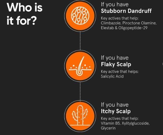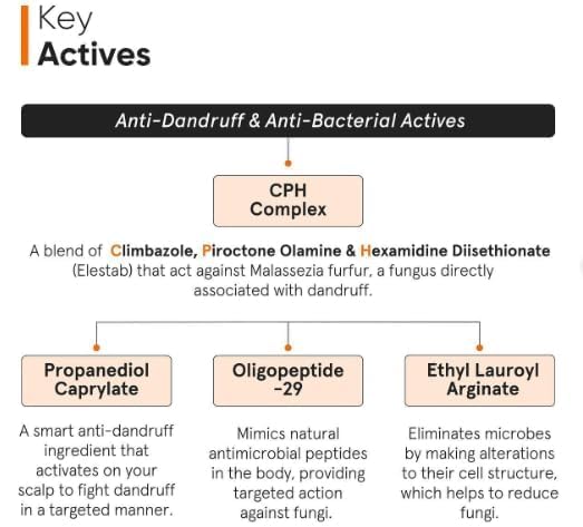 Inhibits Dandruff causing : Climbazole & Piroctone & Oligopeptide 29 a potent trio of agents tackles the root cause of dandruff