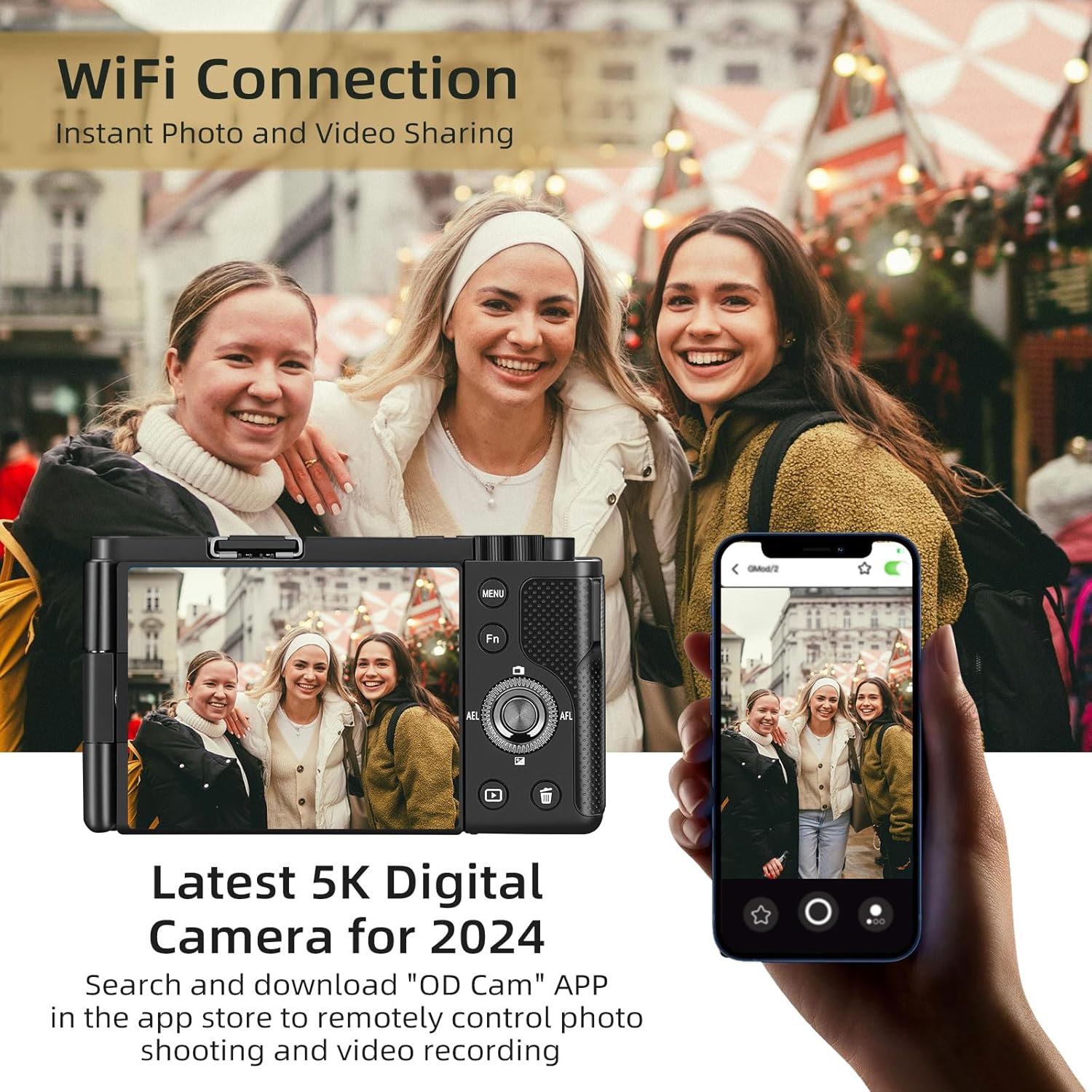 5K Digital Camera& 4 Focus Modes: Experience the ultimate in photography with this digital camera that captures YouTube 5K videos and 64MP UHD photos. With three focus modes: autofocus, manual focus and mixed focus, this 4k camera is equipped with a 12X optical zoom to capture landscapes clearly at both near and far distances,which is enough to meet your photography needs.