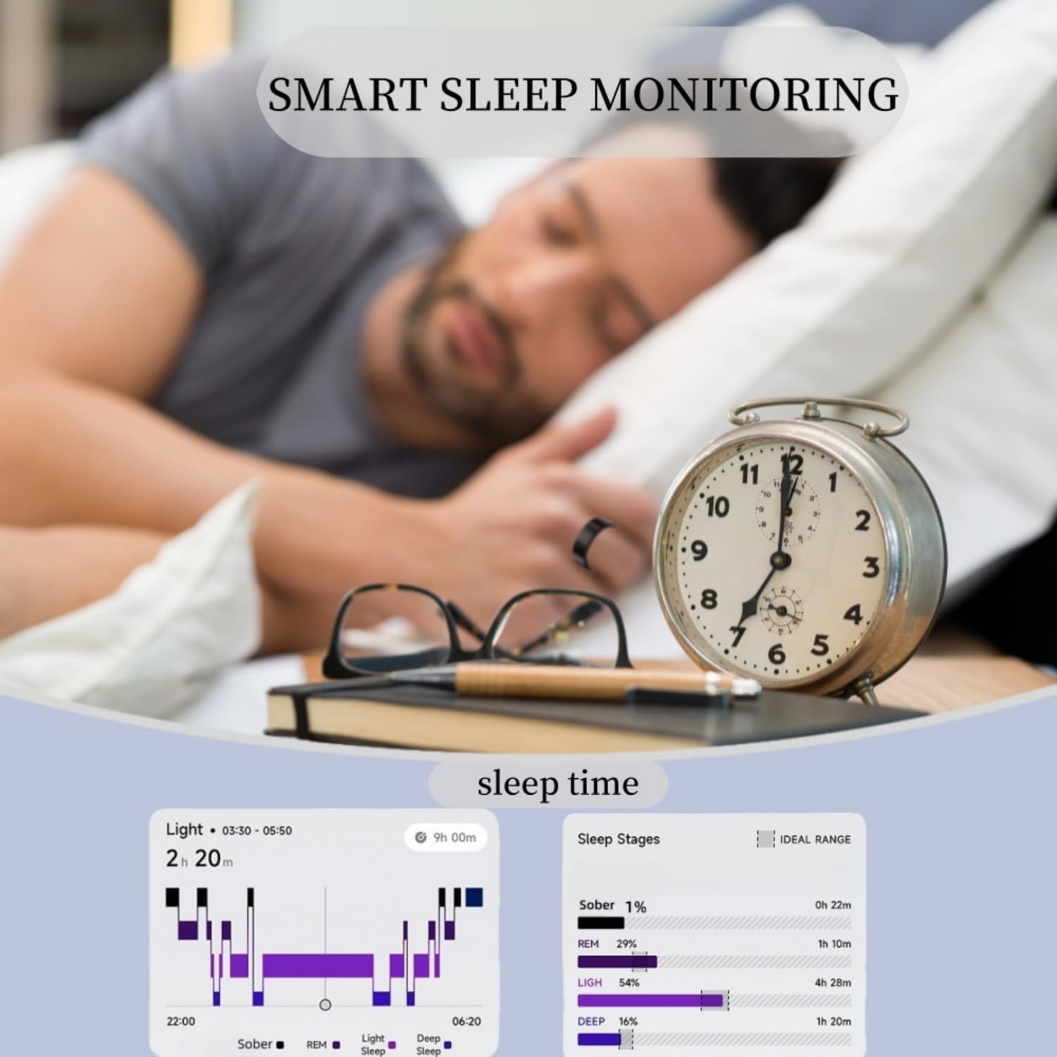 【Senseless Wearing for Better Sleep】Don’t like wearing a watch to bed? You deserve a sleep tracker ring. Made of lightweight, skin-friendly, high-strength titanium, it’s designed to last and lighter than the average wedding band. Non-allergenic and waterproof. This sleep ring provides monthly, weekly, and daily reports on various sleep stages, including deep sleep, REM sleep, light sleep, and wake times. It’s ideal for long-term wear, ensuring detailed sleep analysis and improved sleep quality
