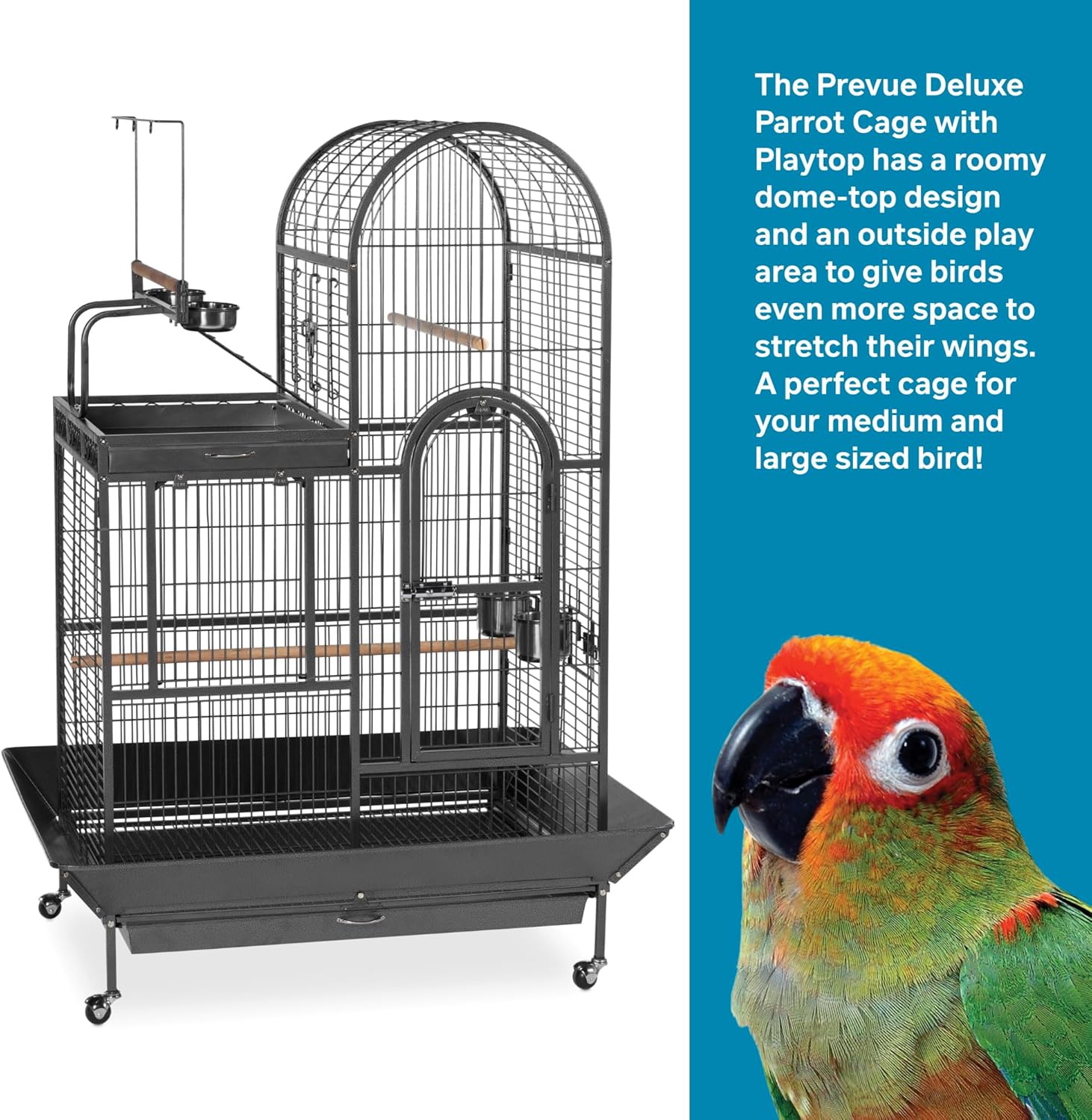 Prevue Pet Products Double Roof Steel Bird Cage with Playtop, 36.5 x 27.25 Inch with 7/8 inch Wire Spacing for Medium to Large Birds and Small Parrots in Black Hammertone Finish