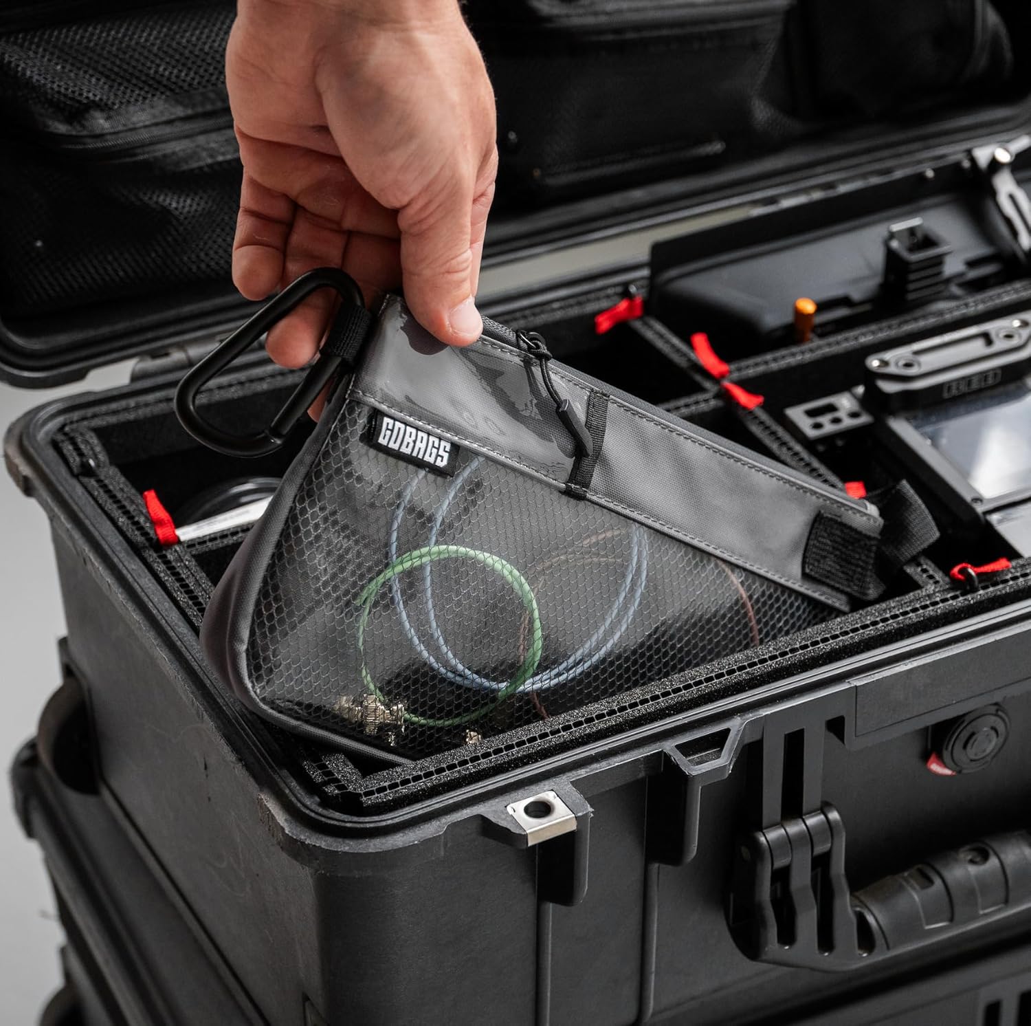 Organize your gear, no more accessories floating around your pelican case or camera bag. GoBags offer a sleek and durable exterior to ensure the safety of your valuable gear. The dividers and pouches provide flexibility to arrange cables, batteries, memory cards, SSDs, and more.