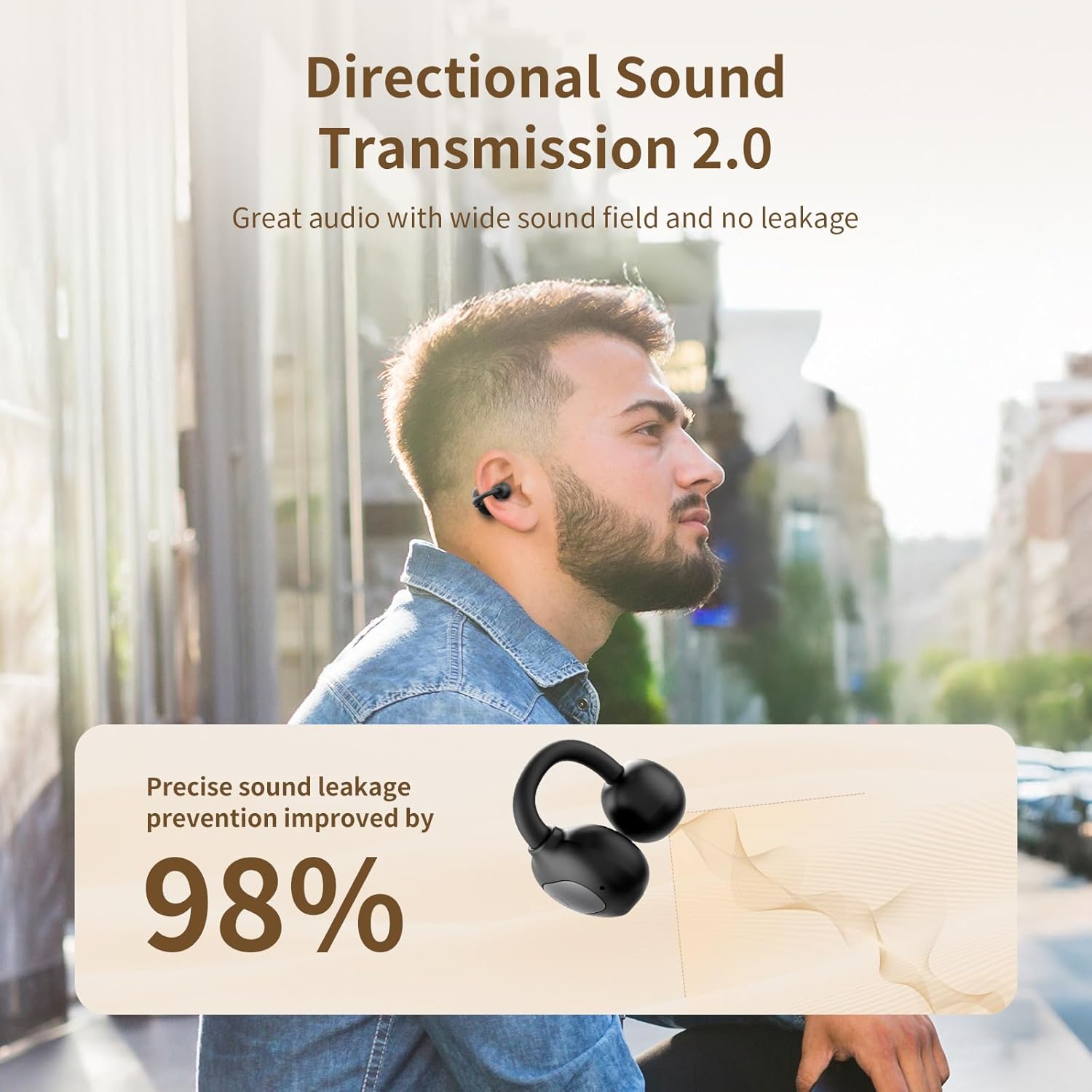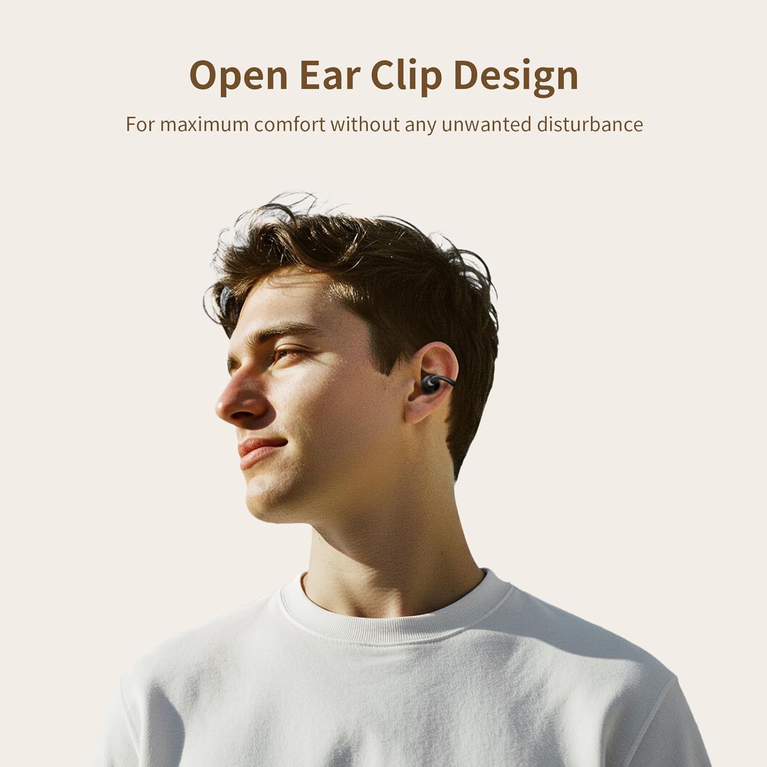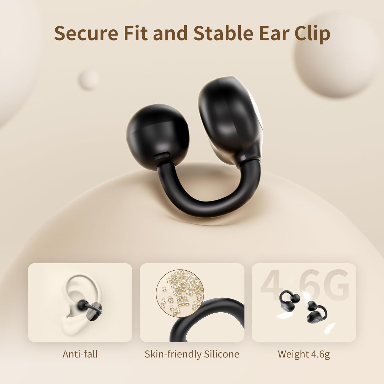 Stay aware of surroundings: The open design lets you enjoy your music while still hearing important sounds around you—perfect for outdoor activities, commuting, or working in shared spaces. Lightweight and breathable for all-day wear, our clip on earbuds reduce ear fatigue and eliminate pressure, making them ideal for extended use. Built with Bluetooth connectivity and quick charging, they deliver convenience without sacrificing performance.