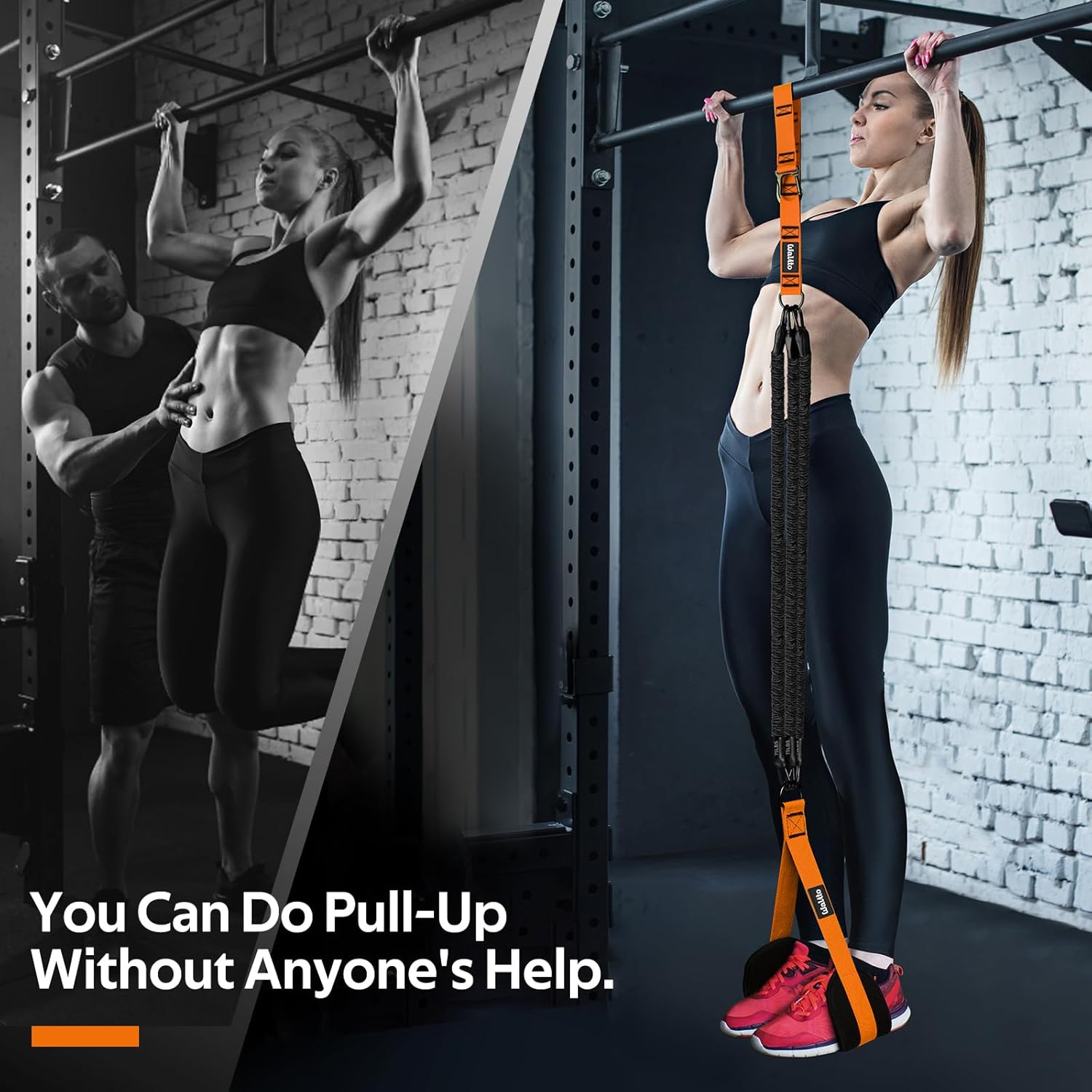 【Height-Adjustable for Universal Use】: The extra-long, heavy-duty nylon strap is fully adjustable to fit any user height and any type of pull-up bar (doorway, gym rack, or calisthenics station). Easily connect, fasten, and customize the band length to control the difficulty level for a perfect, personalized workout every time.