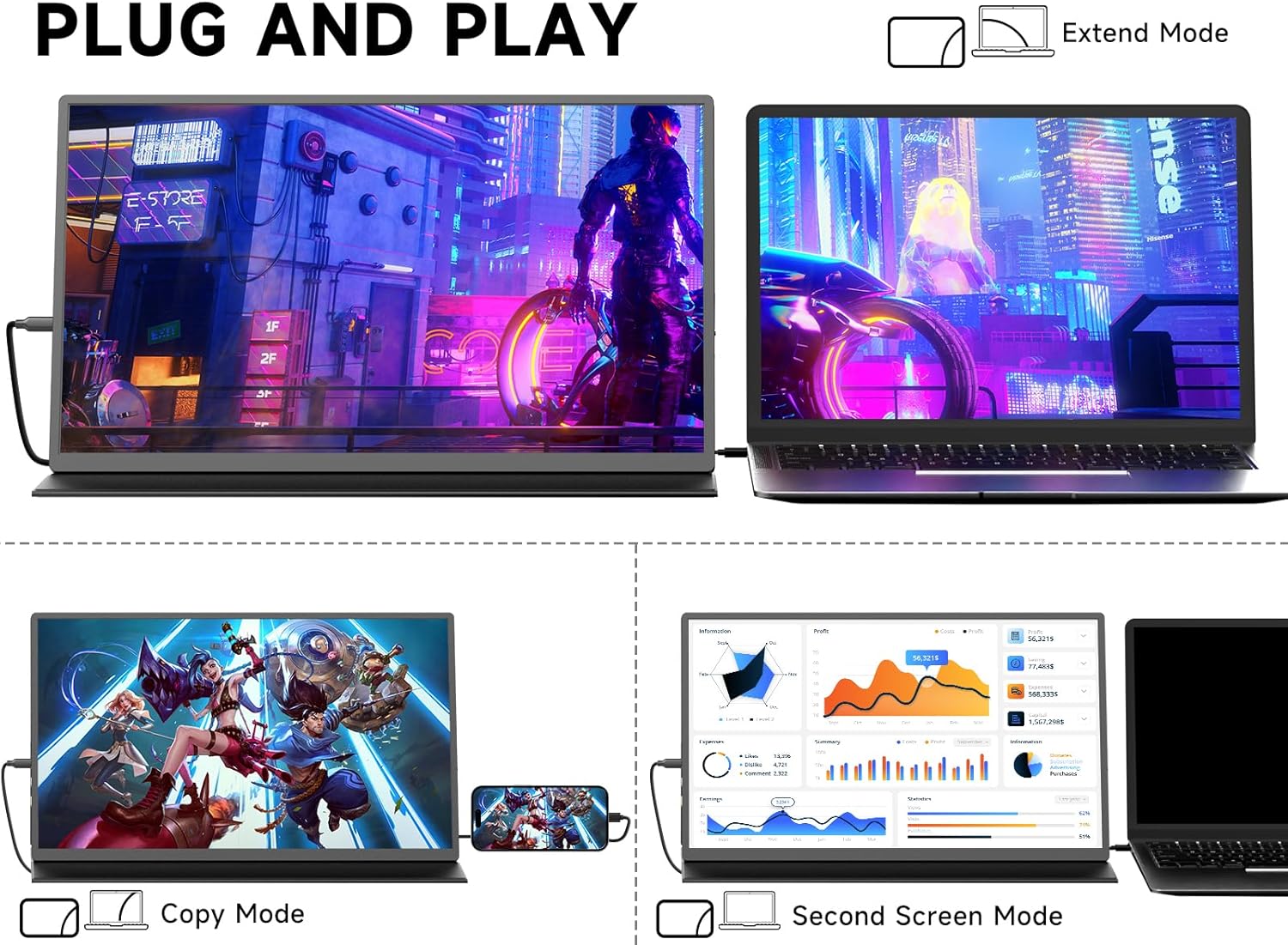 [100% sRGB Color Gamut] Our 18.5 inch portable monitor used IPS screen, reduces blue light radiation damage, HDR higher screen quality for higher motion clarity and smoother game visuals