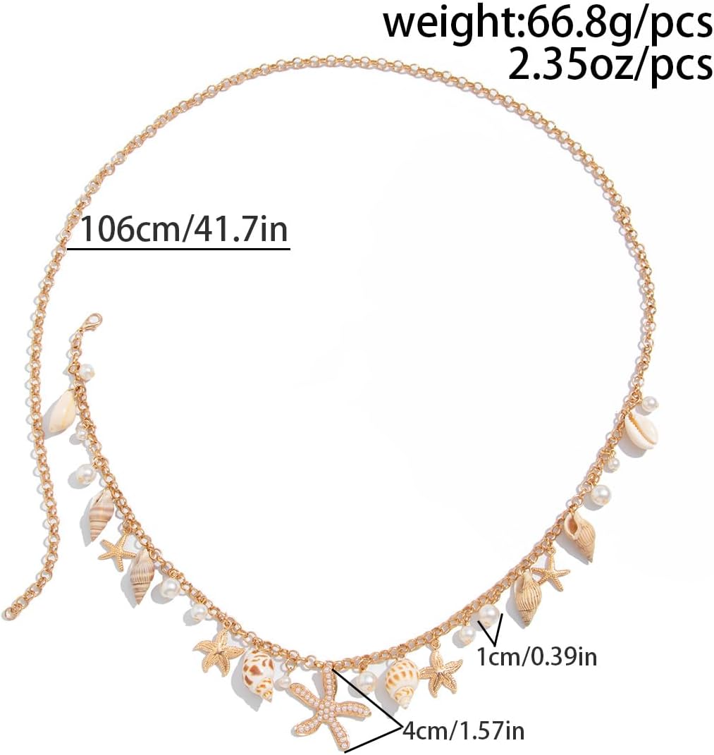 Seashell Starfish Waist Chains for Women Bohemian Conch Pearl Shell Body Chain Summer Beach Charm Waist Chain Bikini Sexy Shell Waist Body Chain Body Accessories for Women
