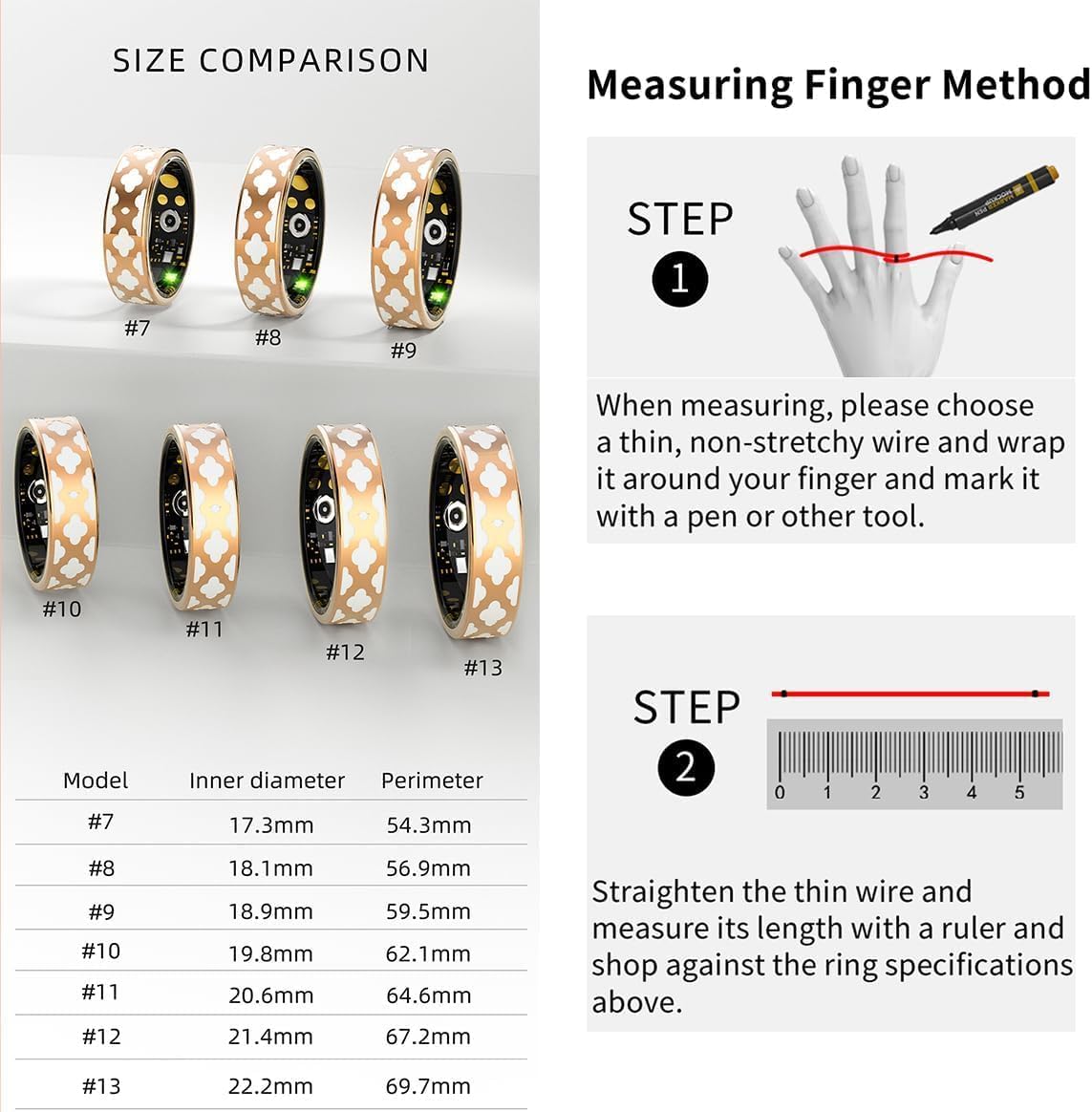 Smart Ring Health Tracker for Women Men, Fitness/Sleep/Stress/HR Tracker, Fitness Tracker with Steps, Distance & Calorie Count, iOS & Android Compatible, IP68 Waterproof (13#)