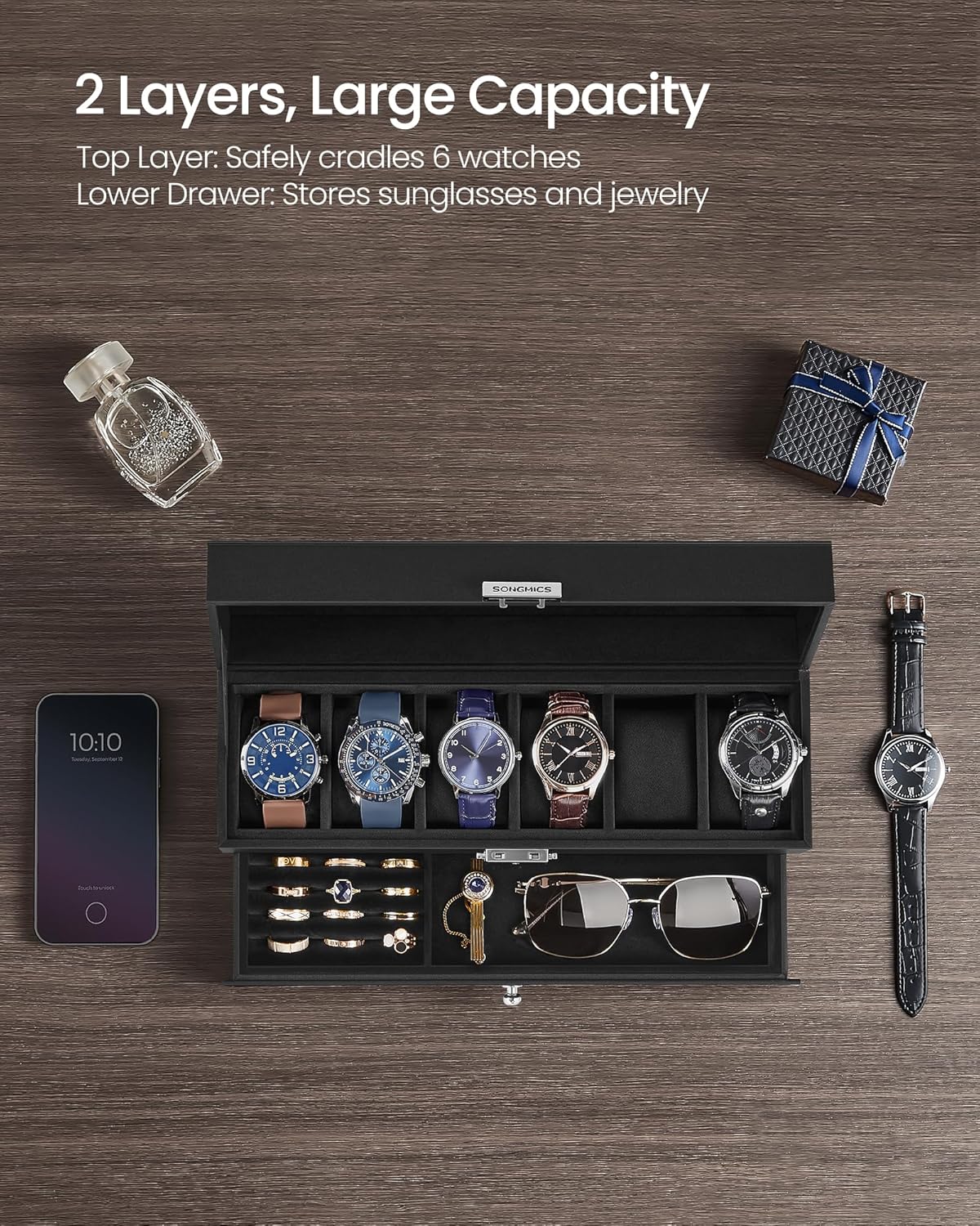 Your watch collections deserve a quality watch box, and this SONGMICS box is a good choice for watch collectors.