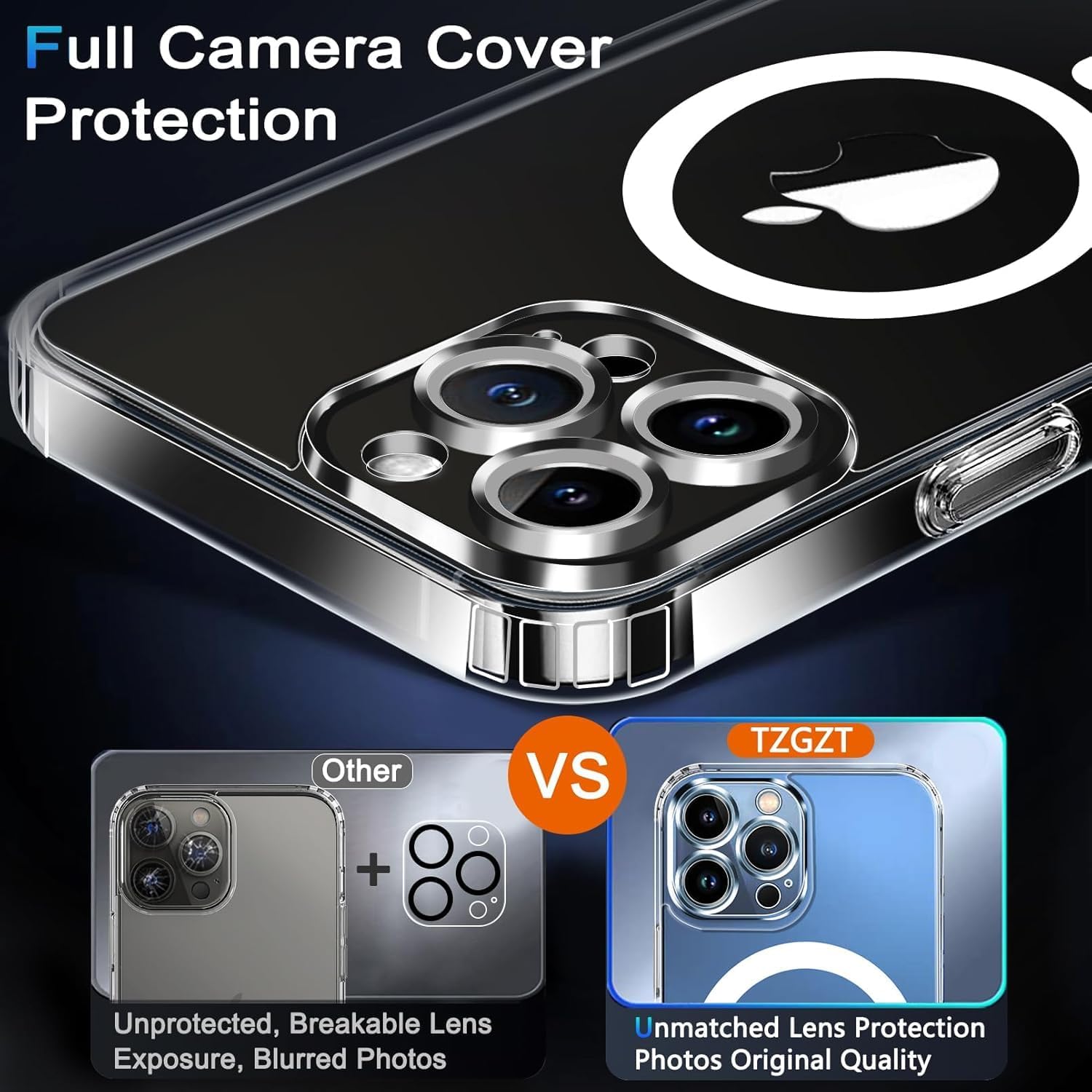 TZGZT Camera Protection for iPhone 13 Pro Max Phone Case, [fits MagSafe Accessories] Magnetic Protective Cover with 2X Screen Protector, Women Case for iPhone 13 Pro Max, Clear