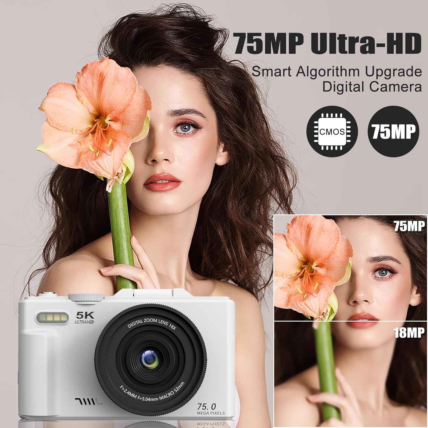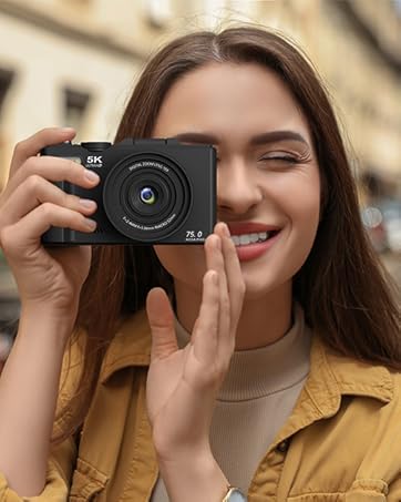 【5K 75MP Digital Camera】:The digital camera captures high-clarity 5K videos and 75MP photos with the CMOS metering system,High quality images and high pixel video sensor can capture every memorable moment clearly,just point, click,and capture professional-quality content effortlessly,It is a perfect photography cameras for beginners.
