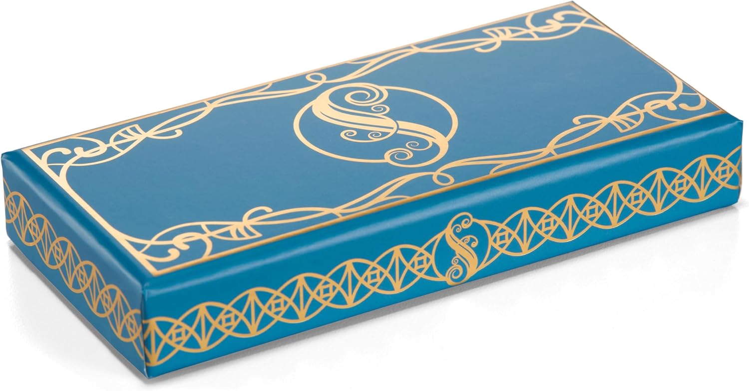 Wicked fans can show off their collegiate pride for Dear Old Shiz with this set of three Shiz University pins from Wicked, complete with Wicked-themed collector’s box. The blue Shiz pin is an exact replica of those worn by students in the Wicked movie; the gold-coloured Shiz pin is Elphaba’s own unique version, EXCLUSIVE to this pin set; the red Shiz pin is Glinda’s own unique version, and each has an antique gold-style finish on the Shiz University logo and a striped base.