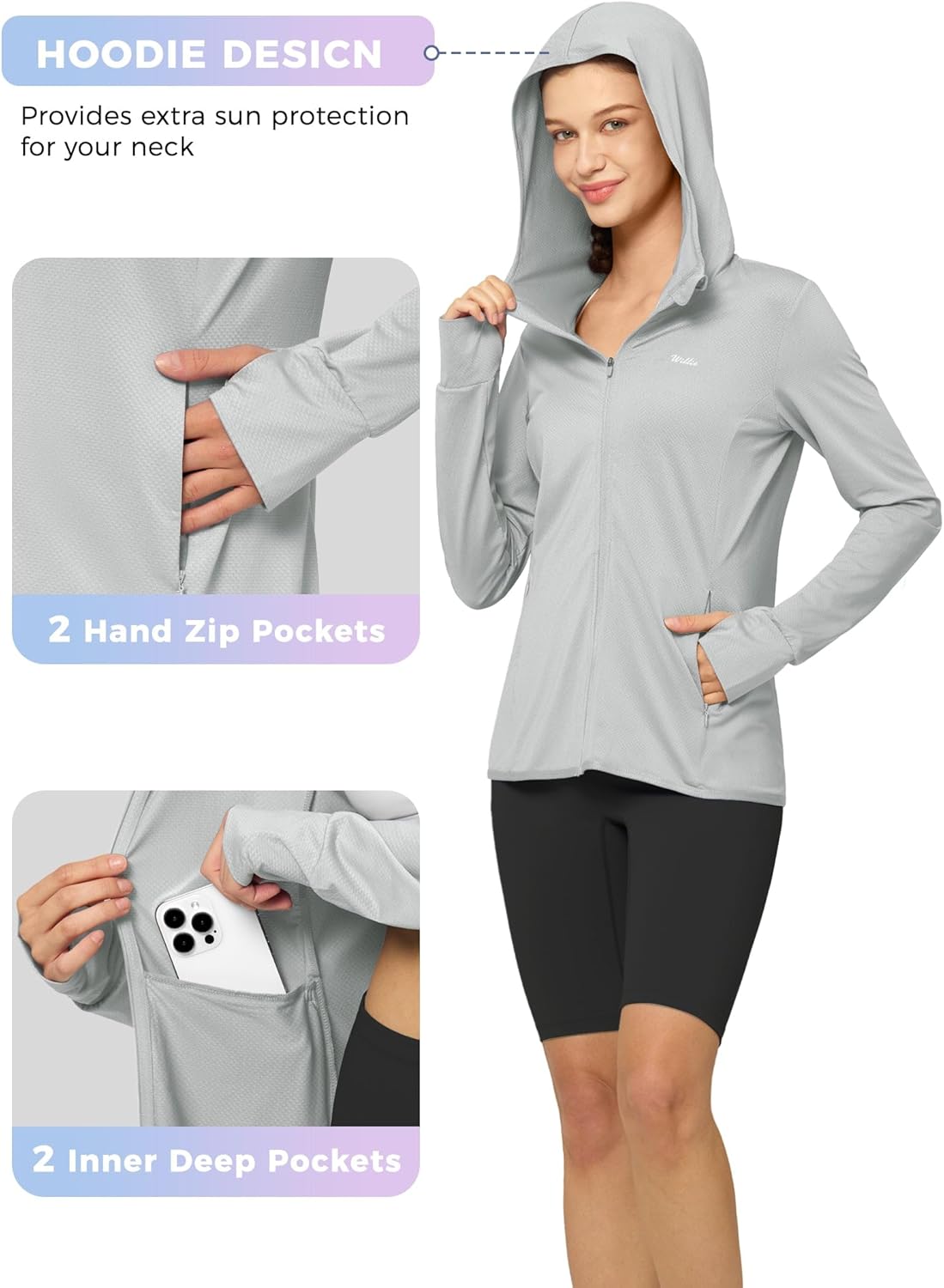 Willit Women’s UPF 50+ Sun Protection Shirts UV Long Sleeve Zip Hoodies SPF Lightweight Jacket Hiking Outdoor with Pockets