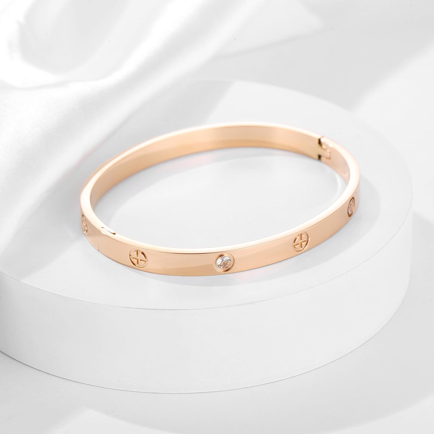 Women’s Stainless Steel Bracelet Jewelry Crystal Bracelet With Cube Zircon Hinge Jewelry oval Bangle Christmas Valentines Birthday Gifts for Women